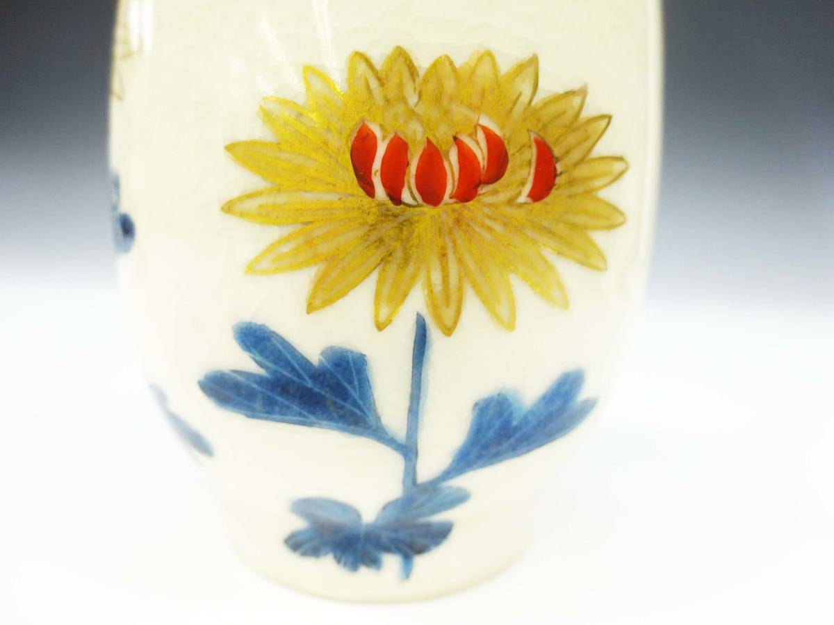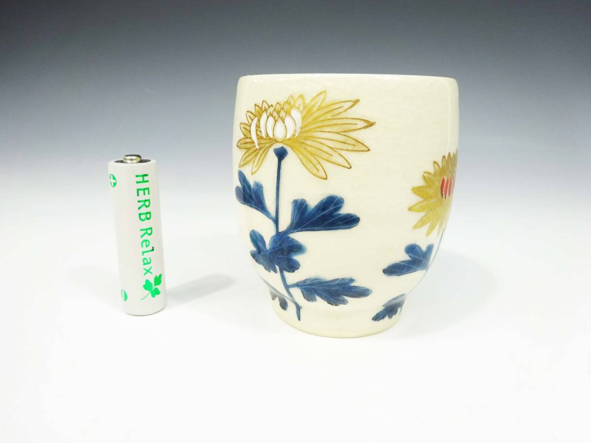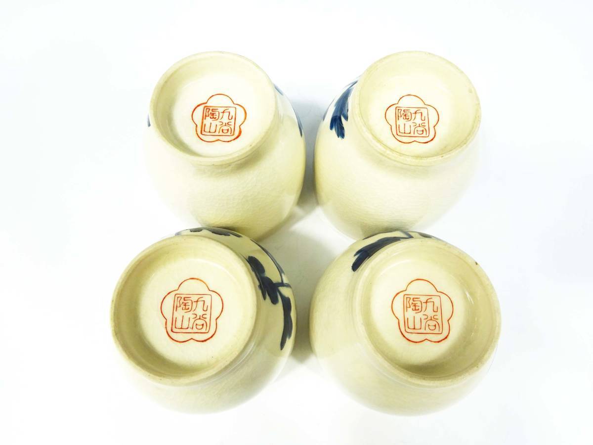 ◆(MK) 九谷陶山 九谷焼 湯呑 4客セット 湯飲み 菊柄 花柄 和食器 キッチン雑貨 貫入 茶器 ぐい呑み 伝統 工芸 レトロ 和風