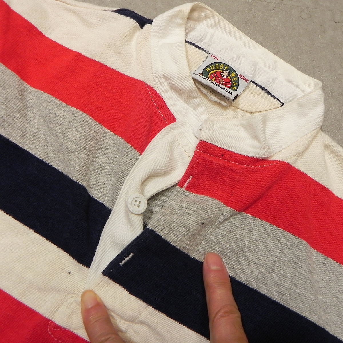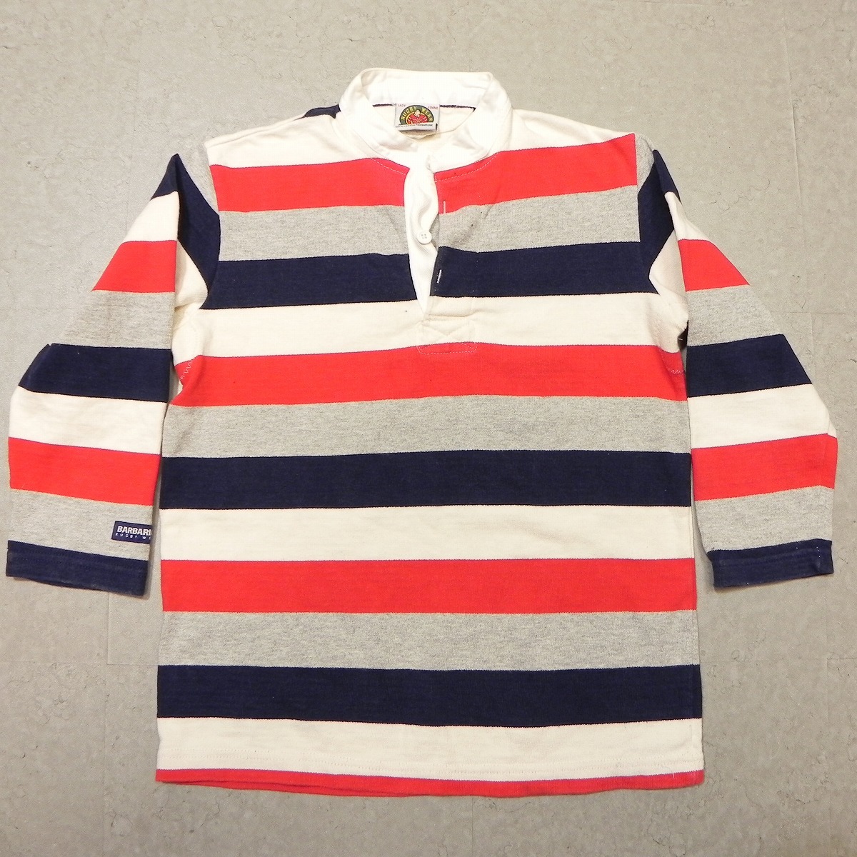 BARBARIAN バーバリアン ラガーシャツ カナダ製 レディース ボーダー 七分袖 コットン 古着 即決 ★a