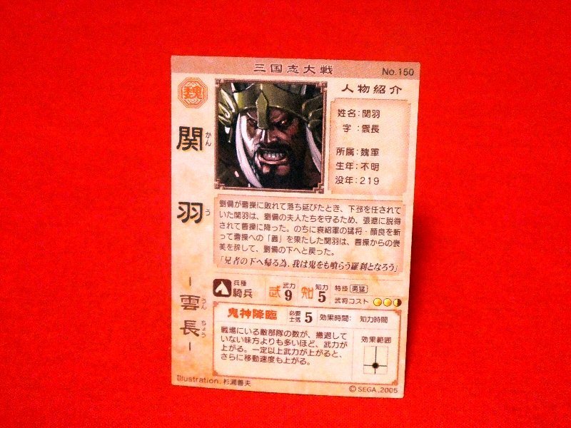 三国志大戦 キラカードトレカ  関羽 NO150す。