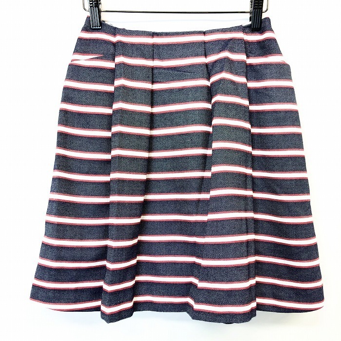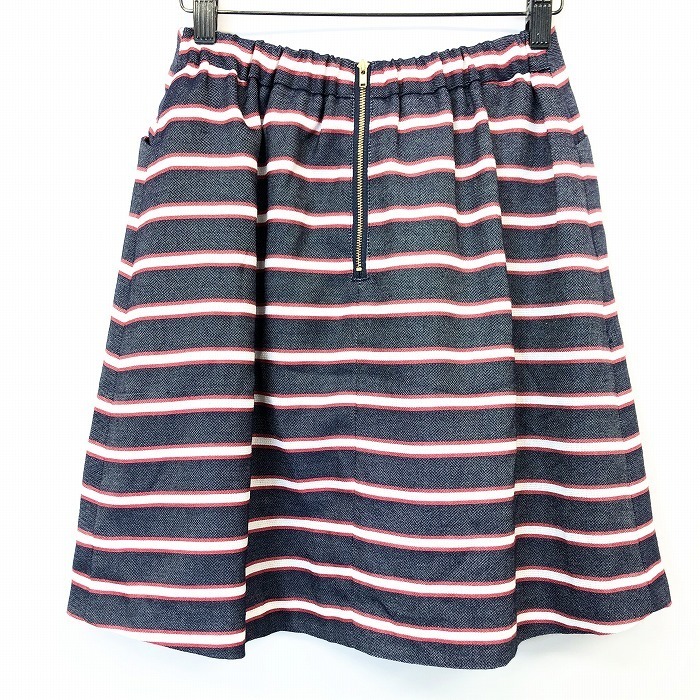 商品タイトル | 【新品】 AG by aquagirl エージーバイアクアガール S レディース フレアスカート 裏地付き ひざ丈 ボーダー ウエストゴム 服 - 紺×赤×白 |