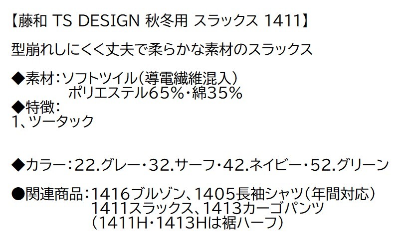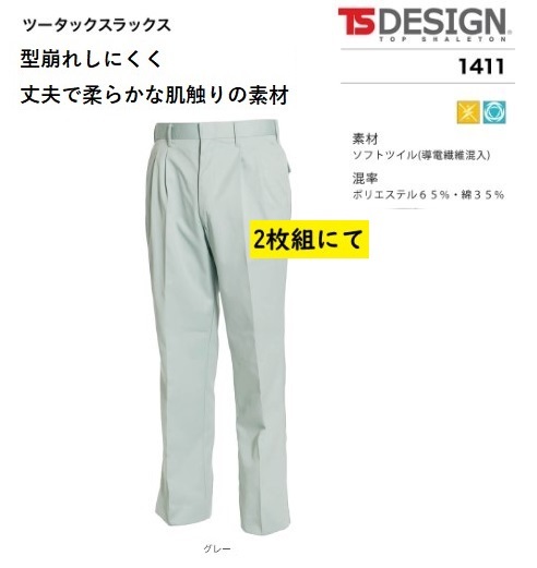 ビックイナバ特価◆TSDESIGN 1411[秋冬]スラックス【22グレー・W130cm】ソフトツイル素材・定価1枚7700円の品、2枚即決2980円
