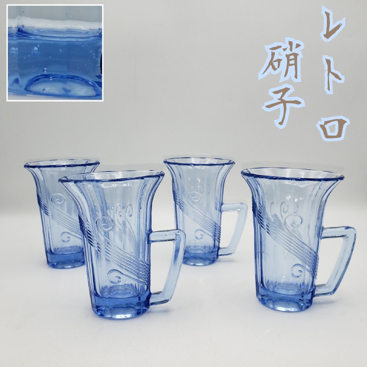 商品名 | レトログラス 4客 古硝子 ビンテージガラス アンティークガラス レトロガラス ブルー 気泡 古い コップ 酒器 | |||||||||||||||||||||||||