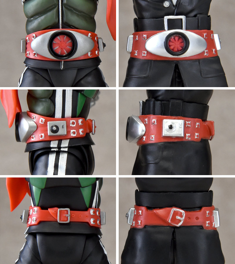 自然なアクションポージングの為に腹部の上下可動、マフラーの基部に回転機構を設計。