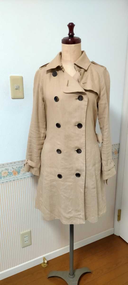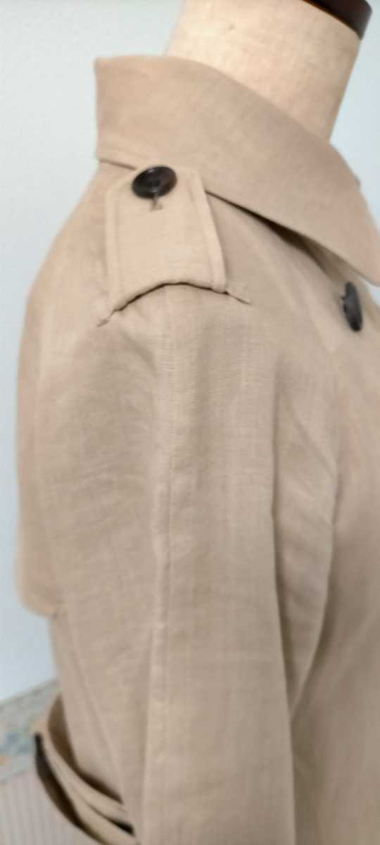 リネン100%トレンチ!   メゾンドリーファー  濃いめベージュのリネントレンチ  繋ぎ季節にいかがでしょう