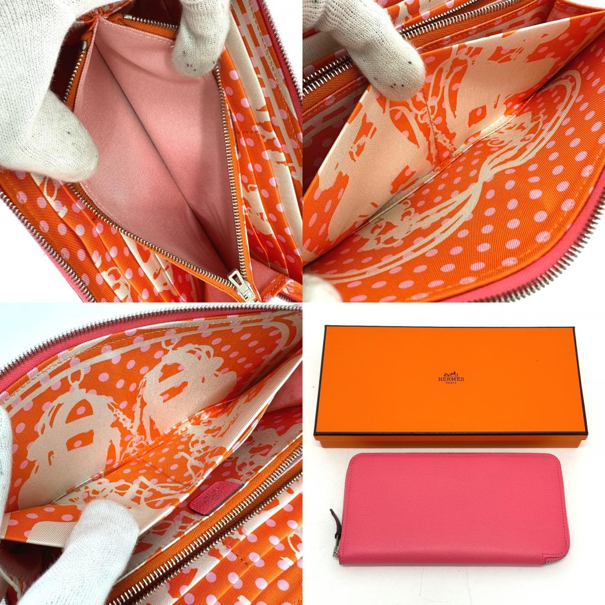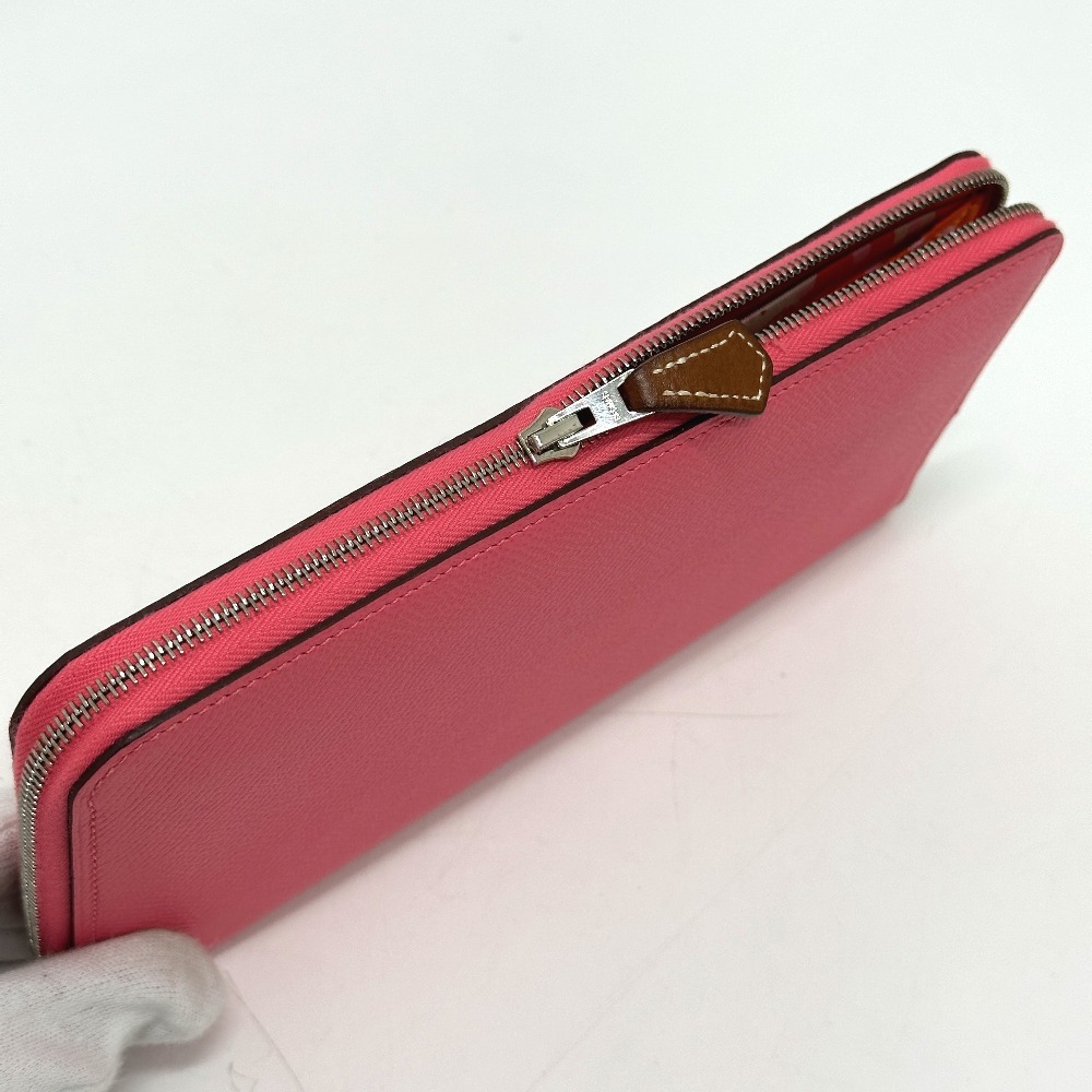HERMES エルメス アザップロング シルクイン ラウンドファスナー 長財布 ヴォーエプソン C刻 ローズアザレ ピンク レディース【中古】