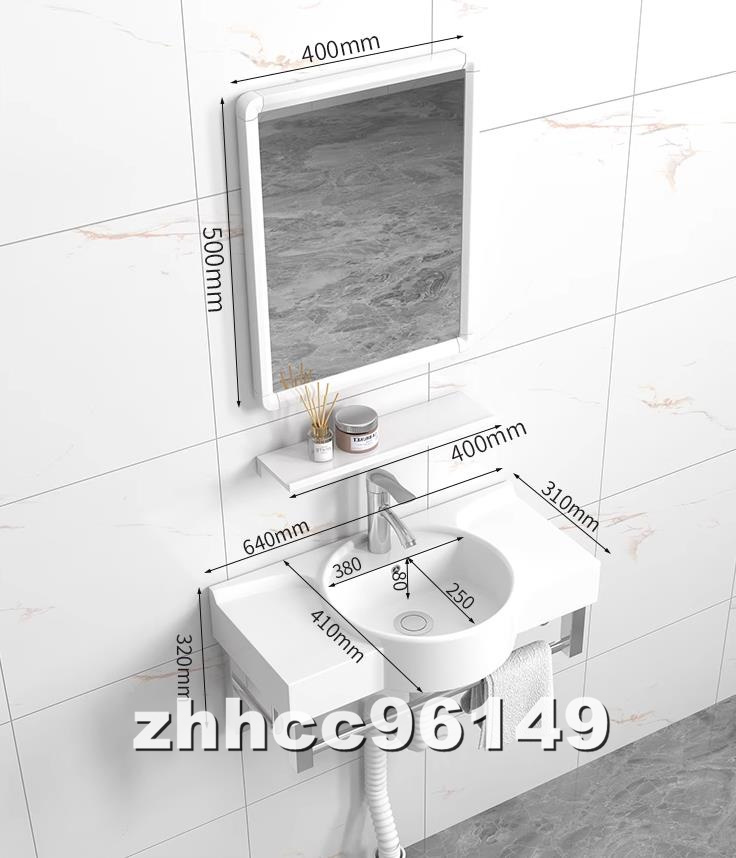 新品 壁掛型タイプ 洗面ボウル 洗面化粧台 鏡つき 混合水栓 家庭用 洗面台 手洗台 シンク インテリア 排水金具付き 64cm×41cm×32cm