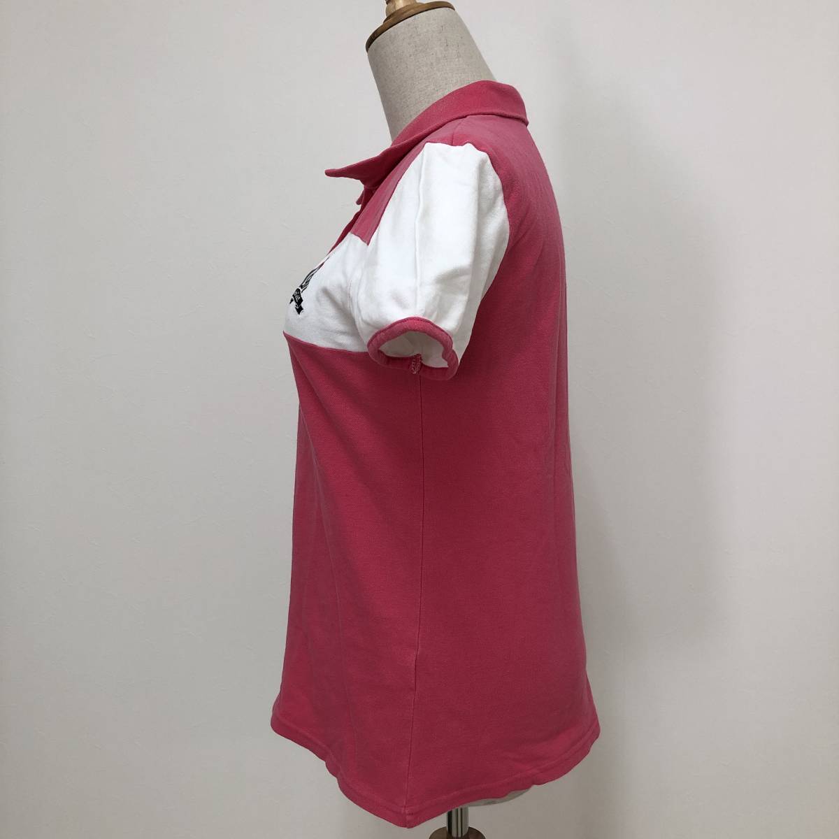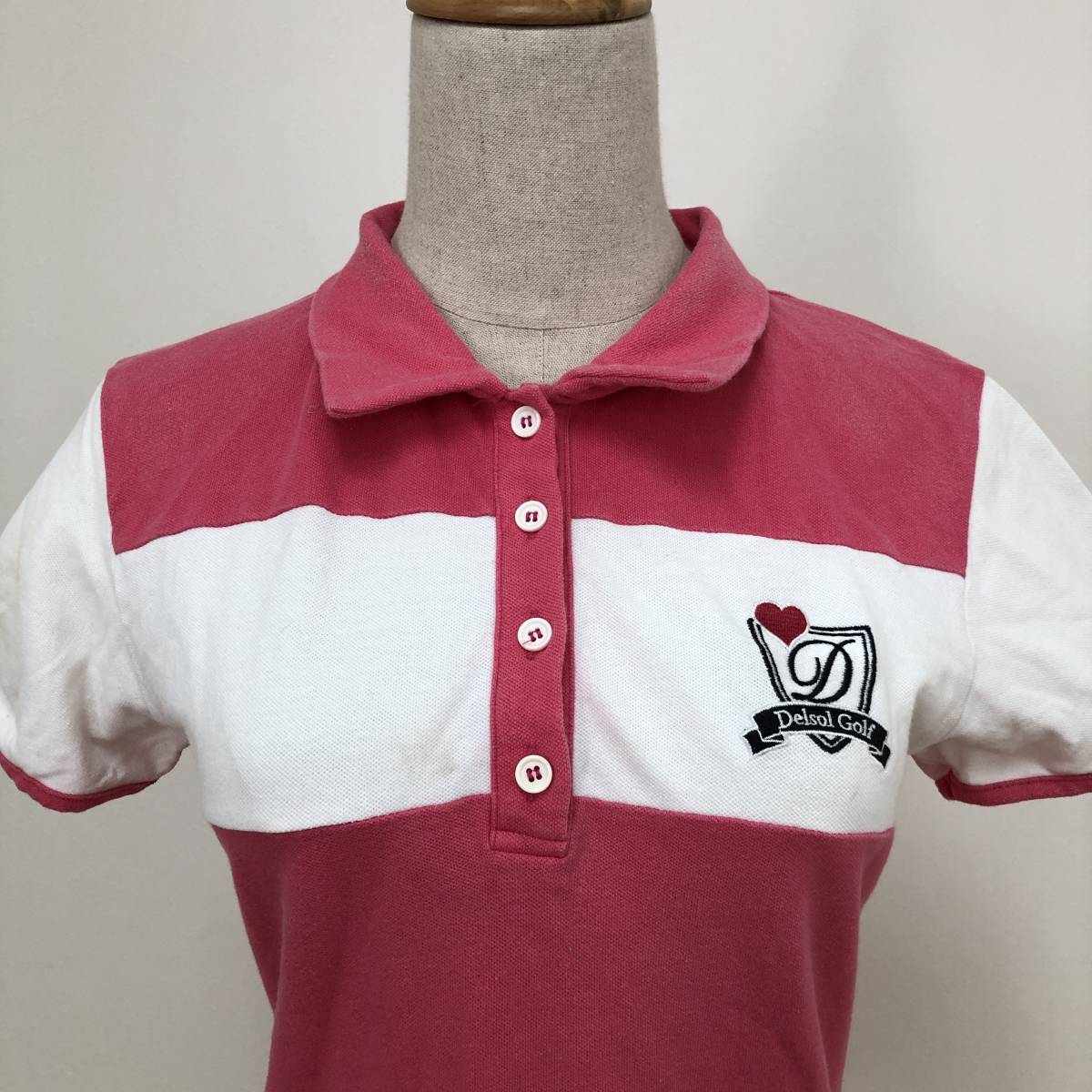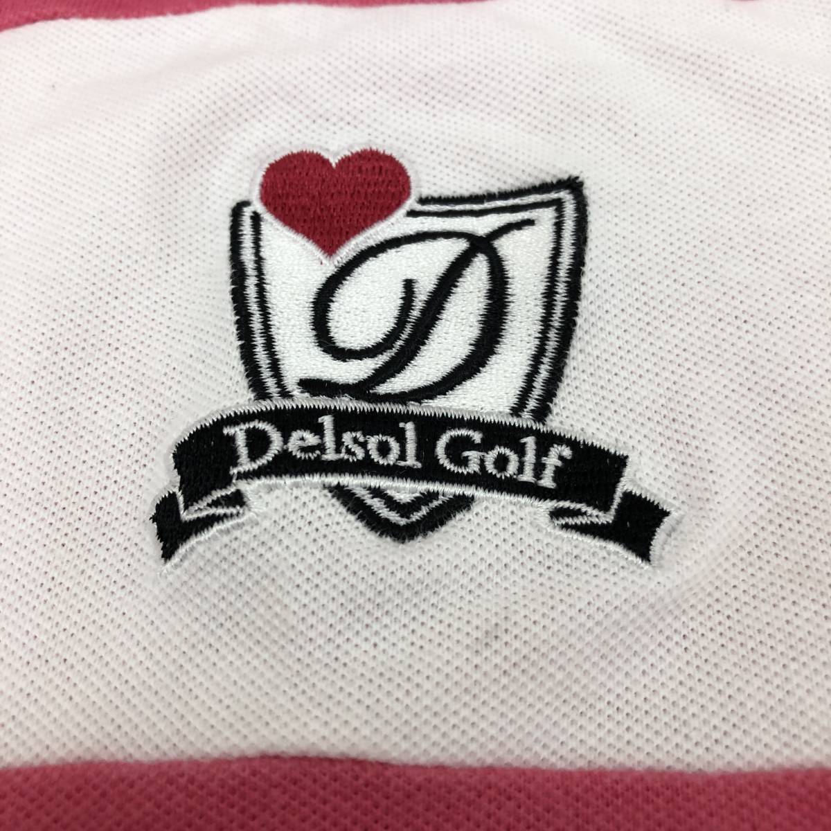 k0364 美品 DELSOL デルソル ポロシャツ 半袖 綿混 ロゴ刺しゅう L ピンク 白 レディース 可愛い スポーツウェア プリティインピンクスタル