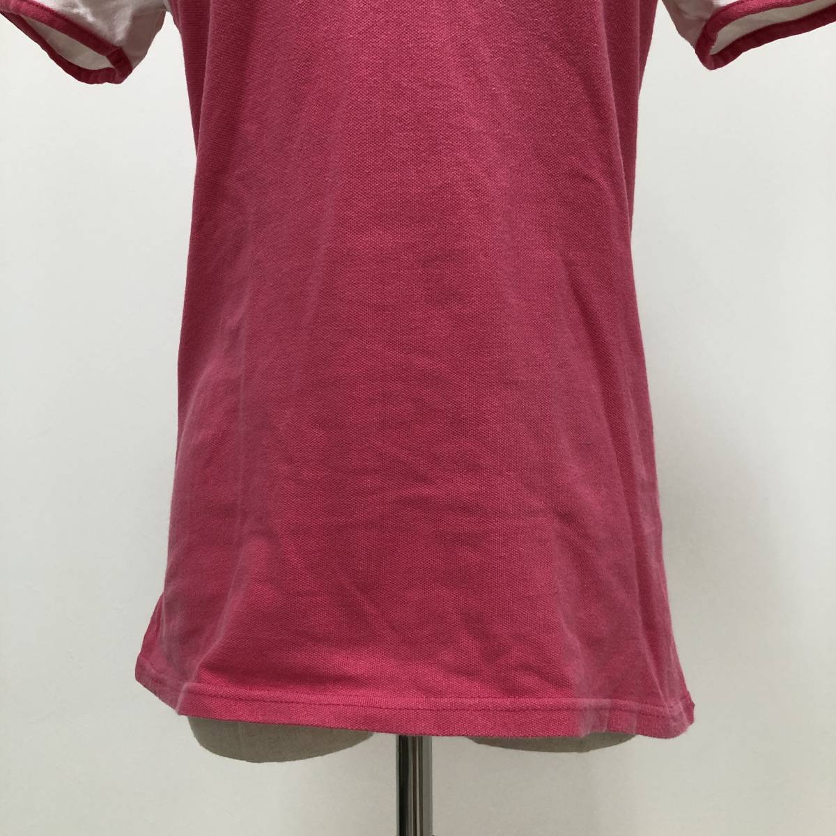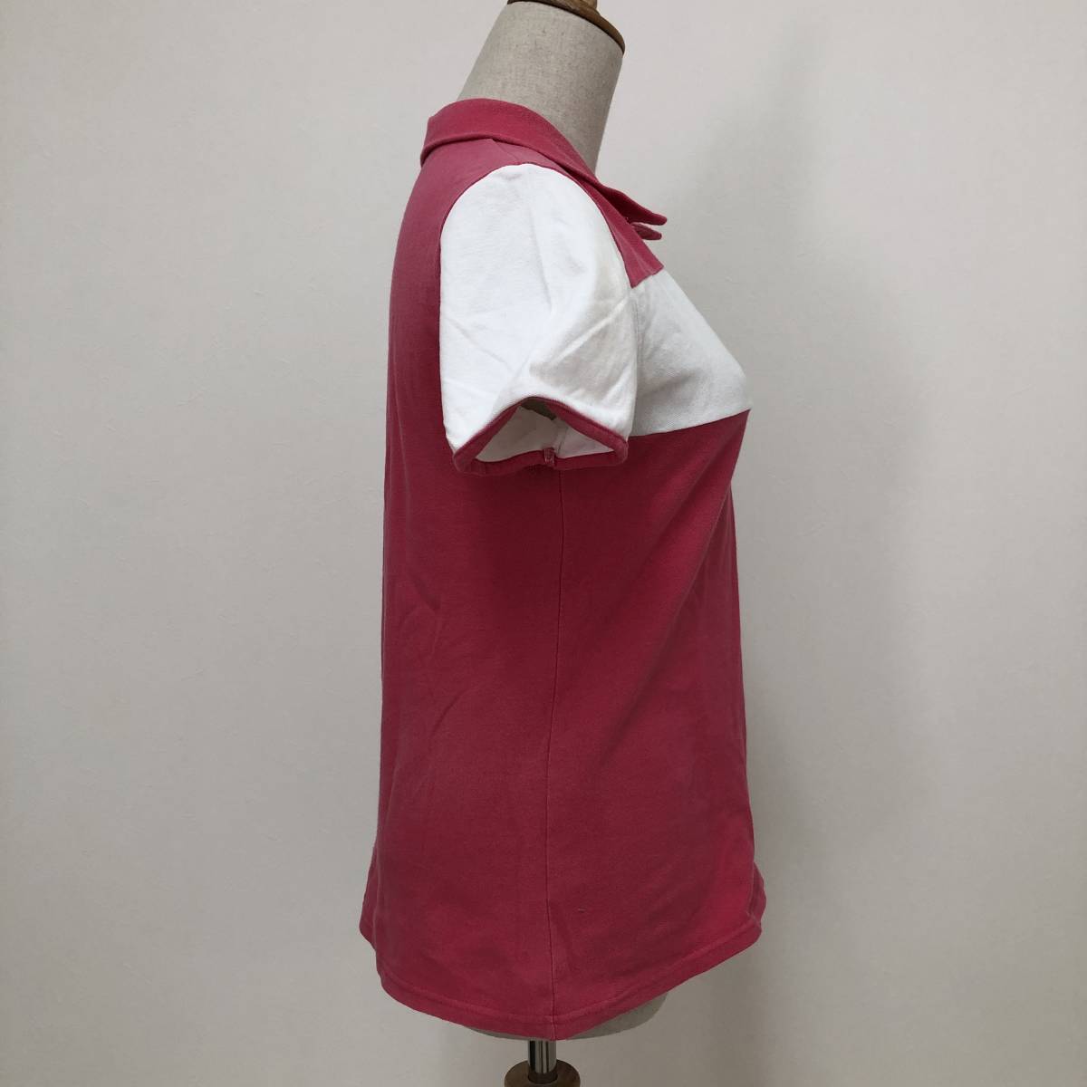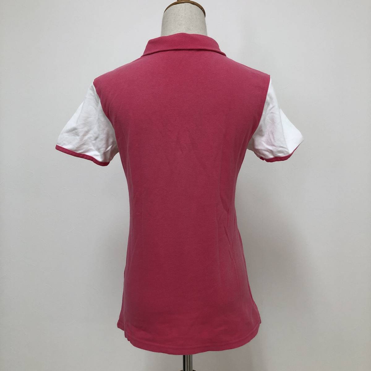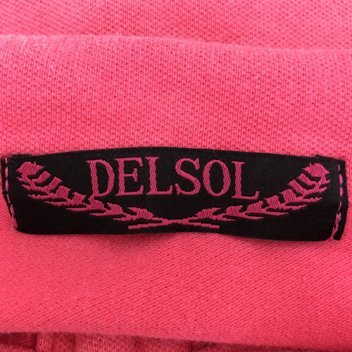 k0364 美品 DELSOL デルソル ポロシャツ 半袖 綿混 ロゴ刺しゅう L ピンク 白 レディース 可愛い スポーツウェア プリティインピンクスタル