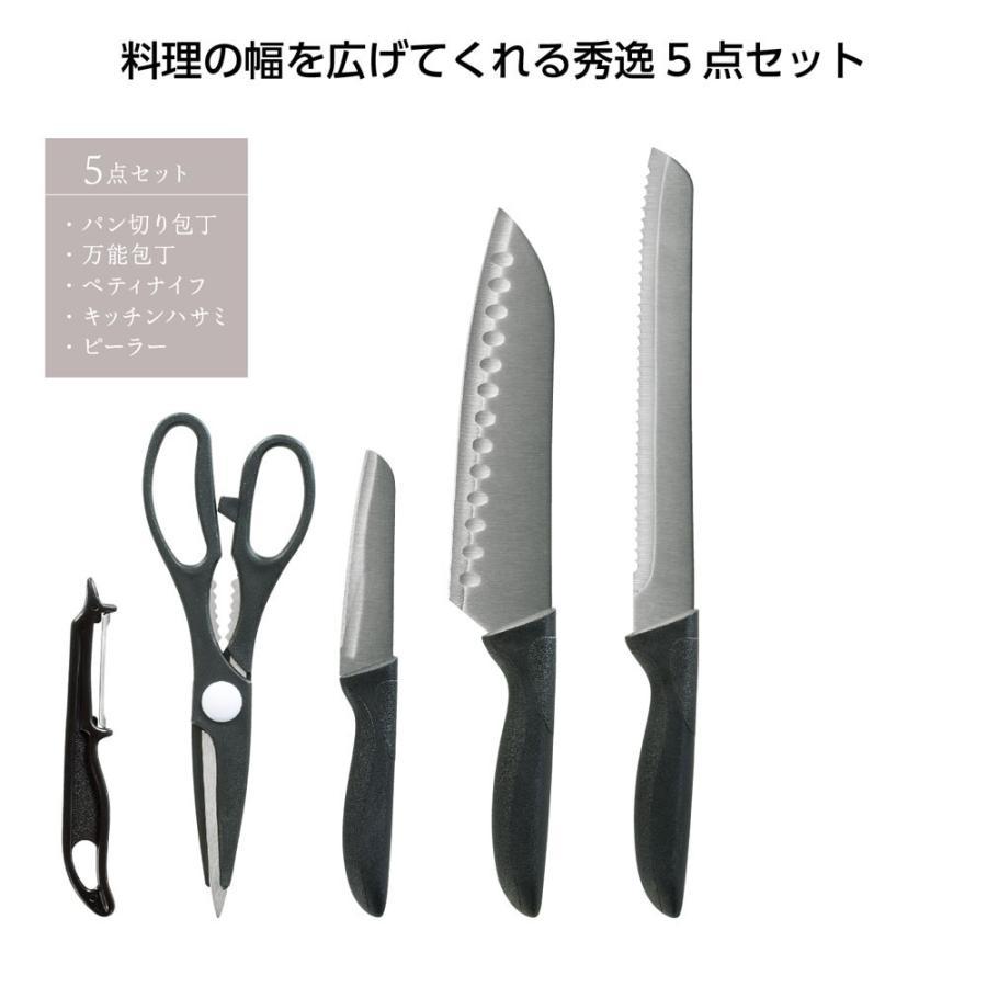 | 品名 | 研ぎ澄まされた鍛冶職人の技を受け継ぐ銘品「刀匠兼守」 包丁五点セット 刀匠兼守 五点揃 丸辰/0677 万能包丁・ペティナイフ・パン切包丁・キッチンハサミ・ピーラー |