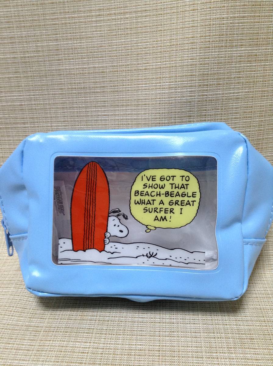 スヌーピー スクエアビニールポーチ 水色 小物入れ