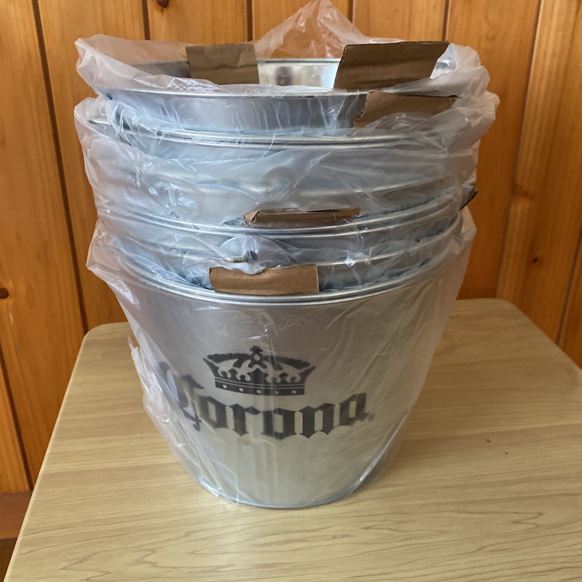 コロナビールのブリキバケツ ブリキ 缶 まとめ売り 5つ セットになります。スチール素材なので多少の傷や色ムラなどあります。