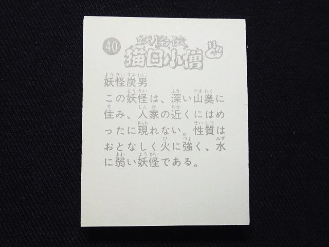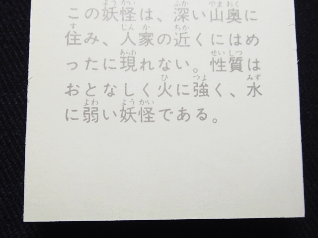 妖怪伝 猫目小僧 ミニカード バラ売り 1枚 ・メーカー:天田 ・サイズ:6.5 cm x 5.1 cm (裁断により若干誤差有り) ・発売時:1976年頃、当時の放送時に販売 ・構成:全40種シリーズ(1-40番・AL2種) ・各規格・サイズ内での同梱可能です。 〓参考項目〓 ・原作:楳図かずお ・総監督:土屋啓之助 ・脚本:雨宮雄児 ・製作:東京12チャンネル、和光プロダクション ・放送局:東京12チャンネル ・放送期間:1976年4月1日 - 1976年9月30日 ・話数:全24話 〓声優〓 ・猫目小僧 - 堀絢子 ・美弥、静江、ユキオの母 - 木村令子 ・旅僧 - 増岡弘 ・なだれまねき - 矢田耕司 ・首なが、地むぐり - 岡田道郎 ・たつお - 菅谷政子 ・やよい - 白川澄子 ・妖木こだま - 北村弘一 ・ユキオ - 戸部光代 ・かすみ - 桂玲子 ・なみだ婆 - 京田尚子 ・泣き男 - 青森伸 |