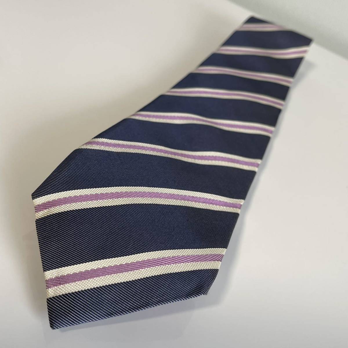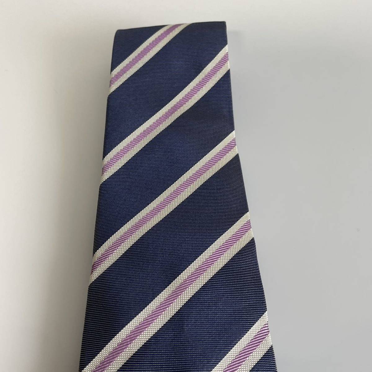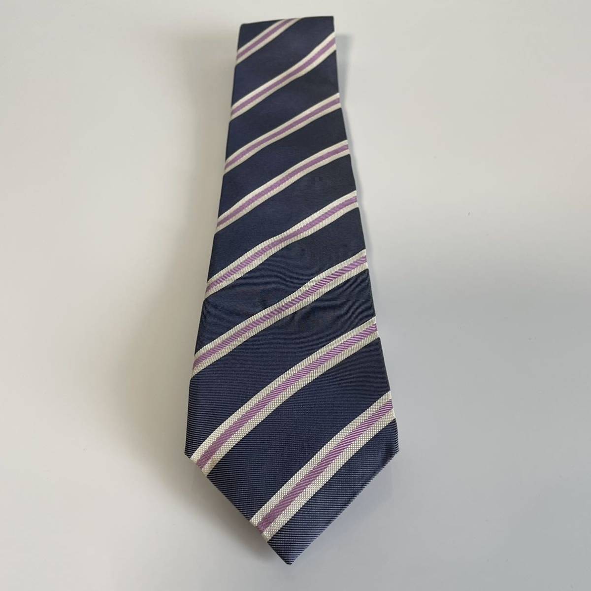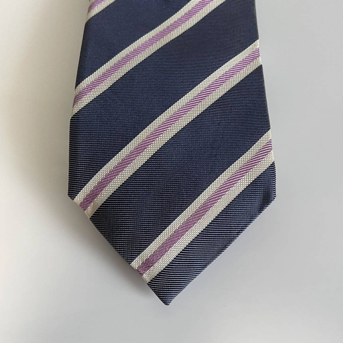 ネイビーピンク白ストライプネクタイ