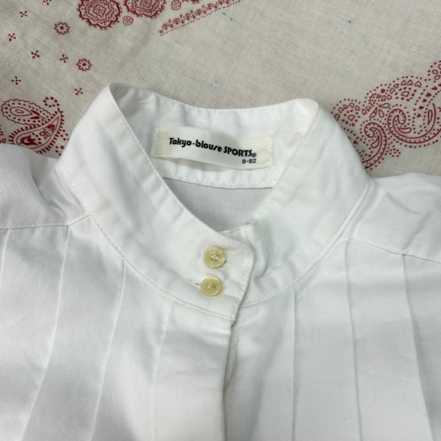 sh●624 レトロ古着 80s~90s 東京ブラウス バンドカラー比翼タックブラウス シャツ B82 白 オールド ヴィンテージ コットン 長袖 ドレスブラウス