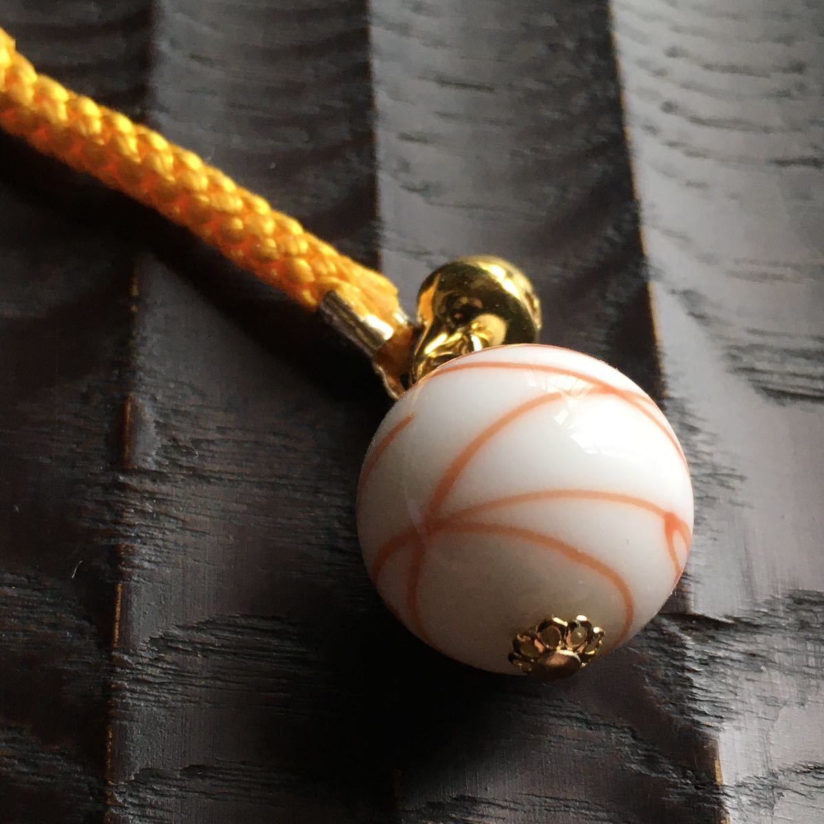 バーナーワークという技法で作った手作りのトンボ玉の根付です。