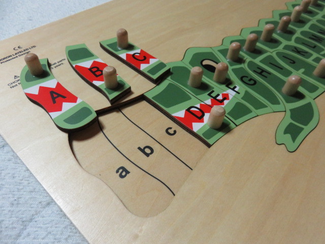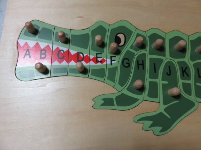DORON LAYELED Wooden Toys Large Size Animal ABC Puzzle ドロン・レイヨルド ABCパズル 木製 知育 知育玩具 アルファベット 英語 パズル ピックアップパズル ワニ クロコダイル サイズ300-490㎜ を出品します。