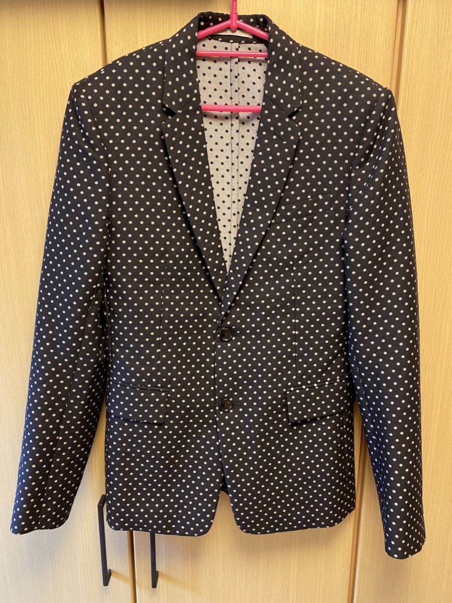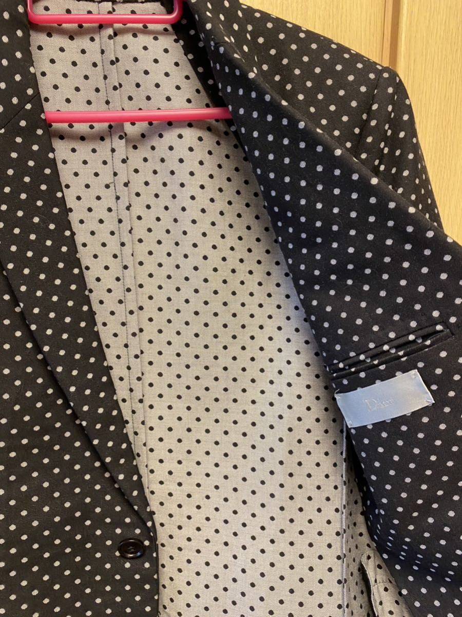 正規 17SS Dior Homme ディオールオム KRIS VAN ASSCHE クリスヴァンアッシュ ドット 柄 ナローラペル 2B テーラードジャケット 黒 42