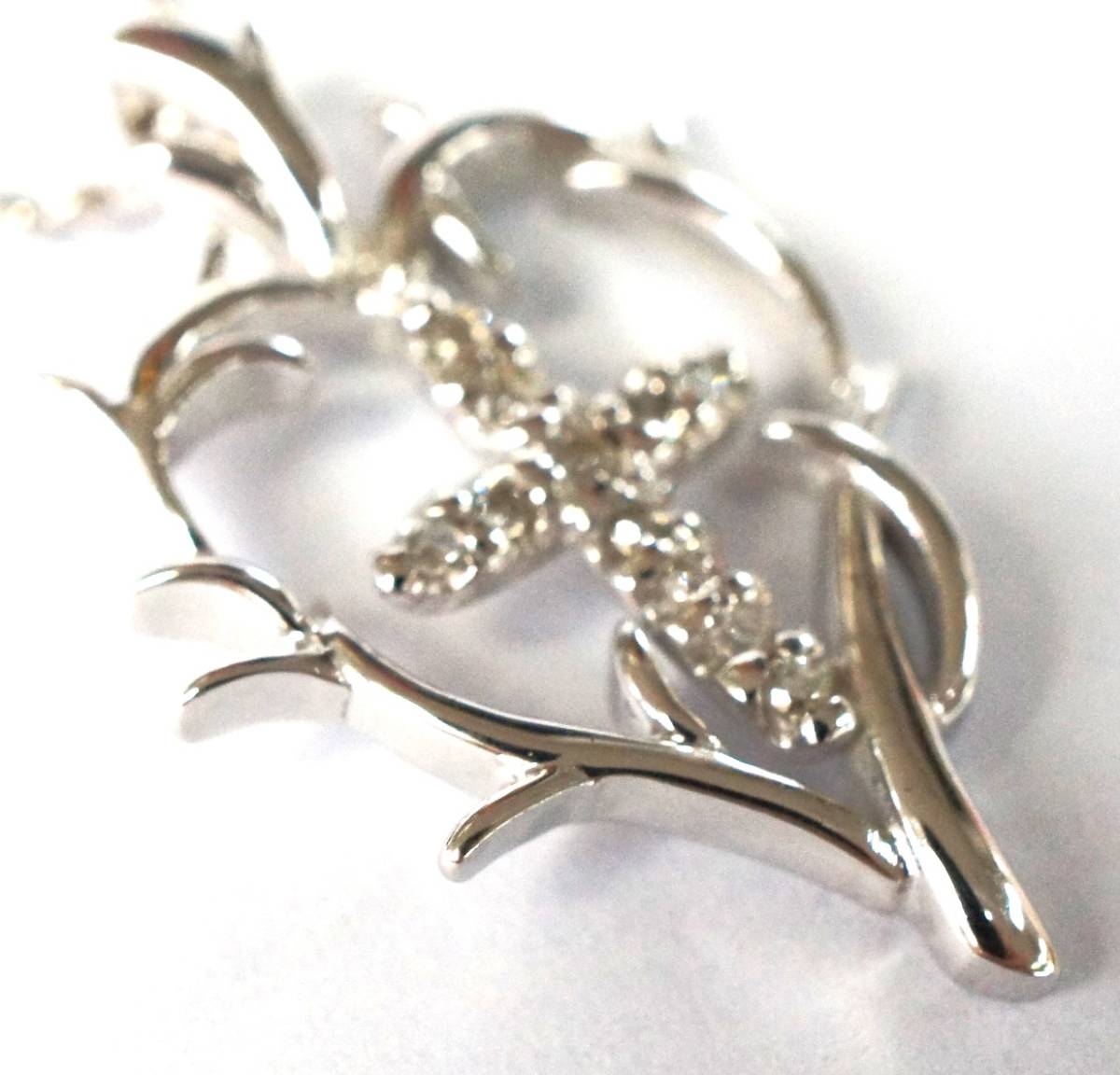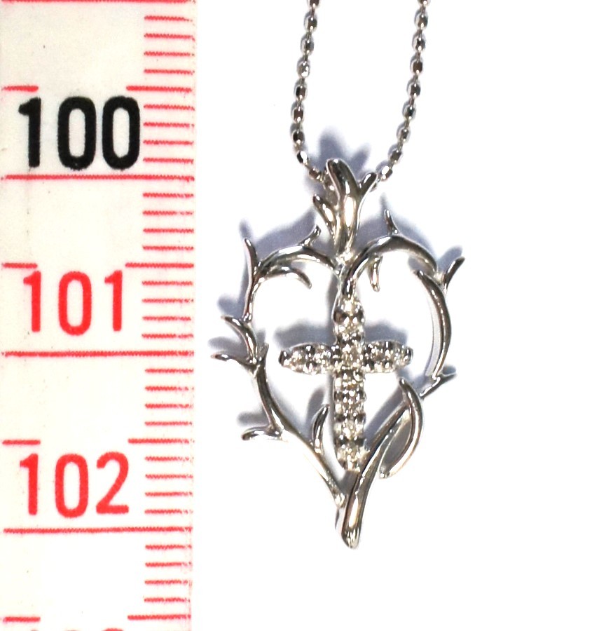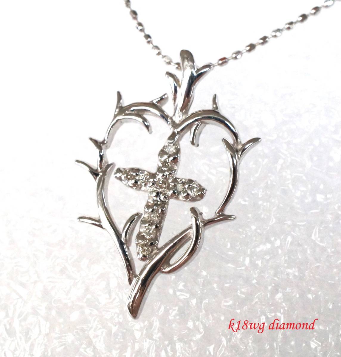 K18WG ダイヤ0.07ct クロス ネックレス フリーチェーン 3.35g いばら 棘 【送料無料】【ホワイトゴールド】 | |||