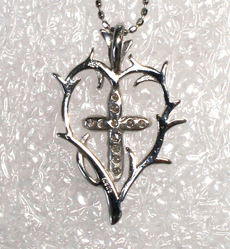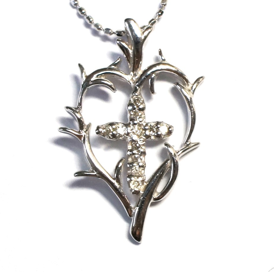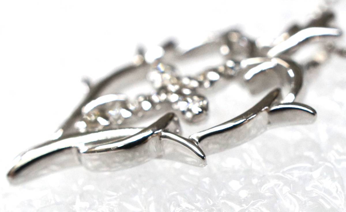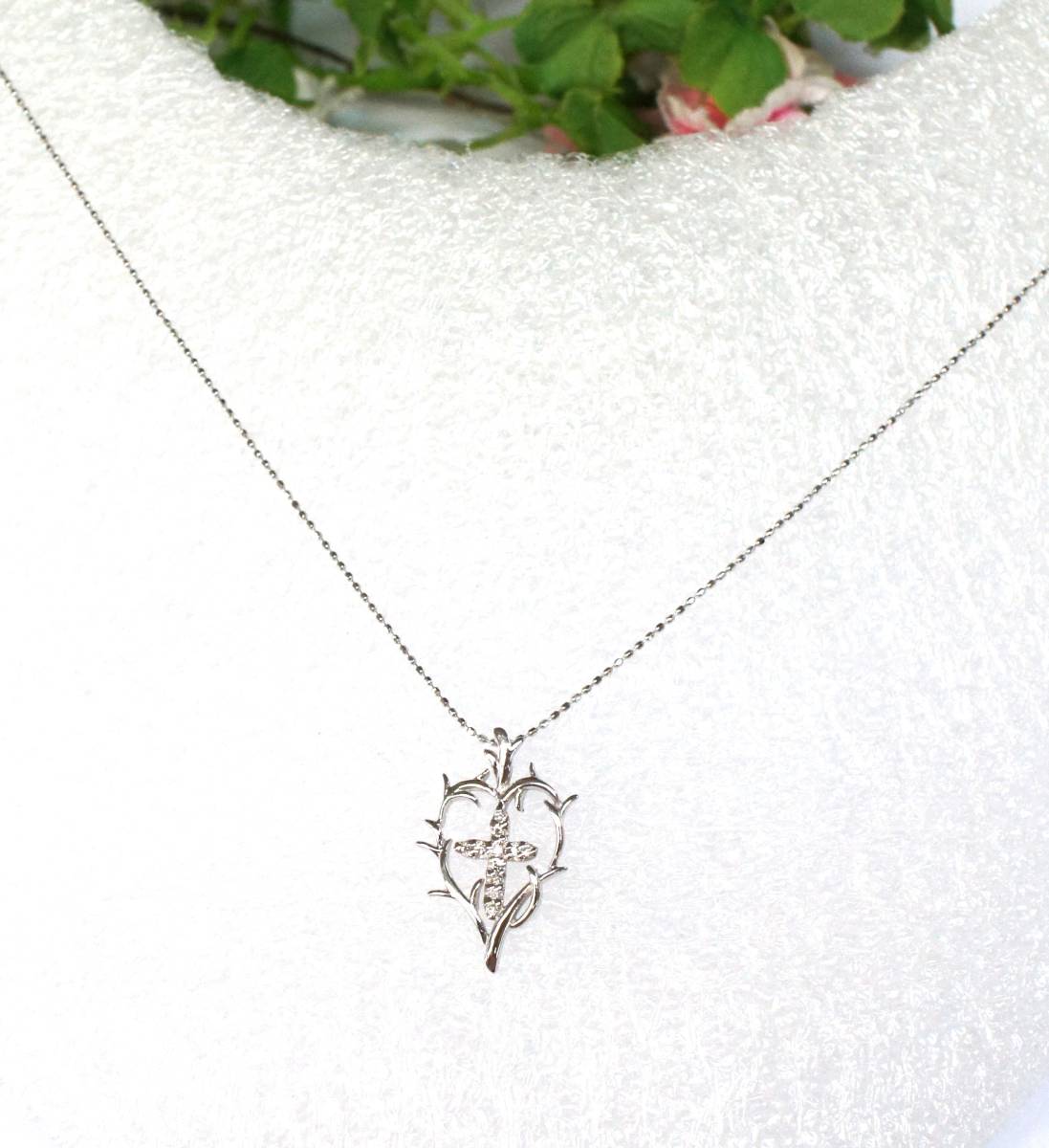 K18WG ダイヤ0.07ct クロス ネックレス フリーチェーン 3.35g いばら 棘 【送料無料】【ホワイトゴールド】 | |||