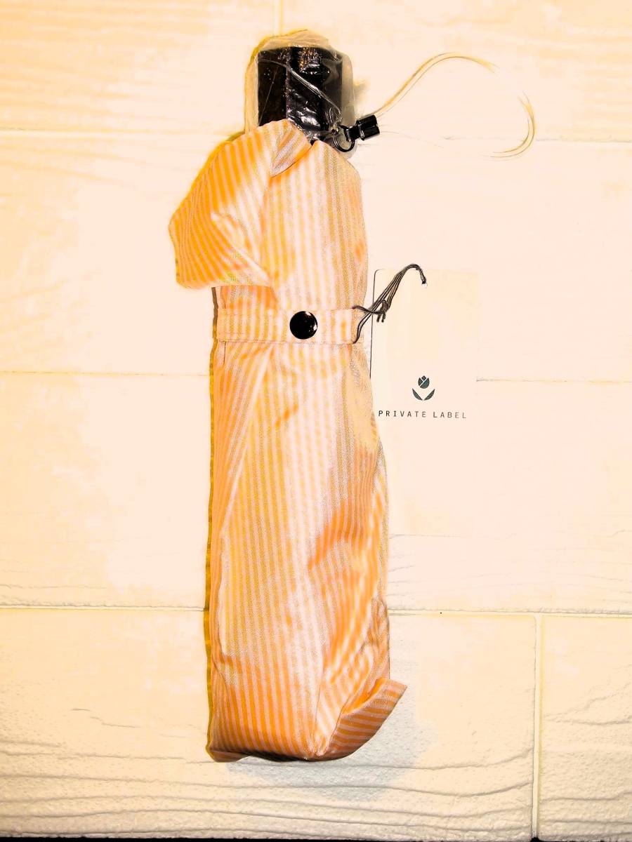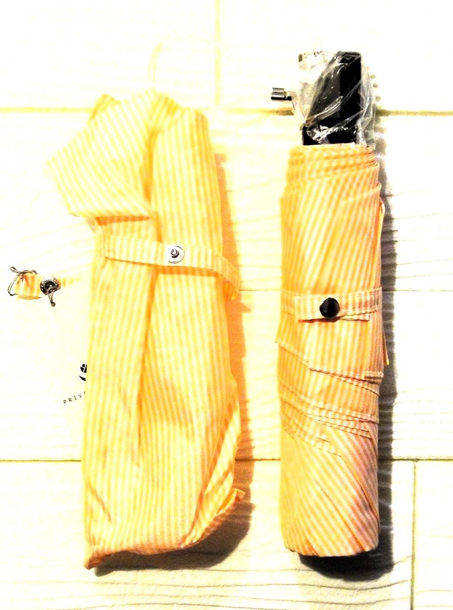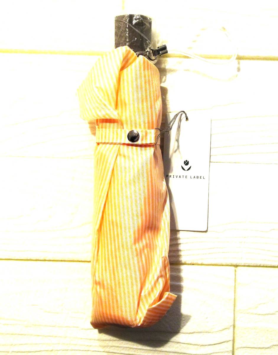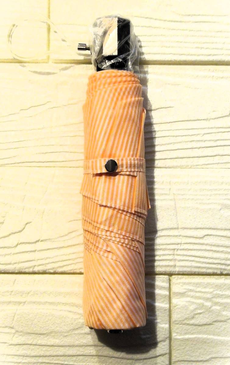 (レディース・折畳み傘・新品) PRIVATE LABEL オーロラ㈱ オレンジ色ストライプ模様 骨長55㎝ 重さ210g軽量
