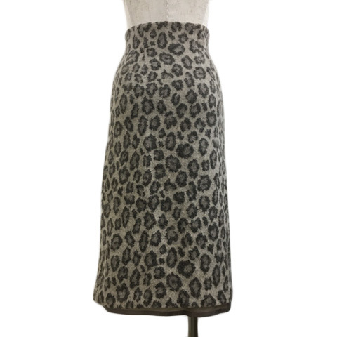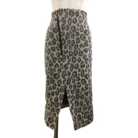 ジュエルチェンジズ アローズ スカート タイト ひざ下 ミモレ スリット アニマル レオパード柄 総柄 ウール 34 茶 グレー ブラウン