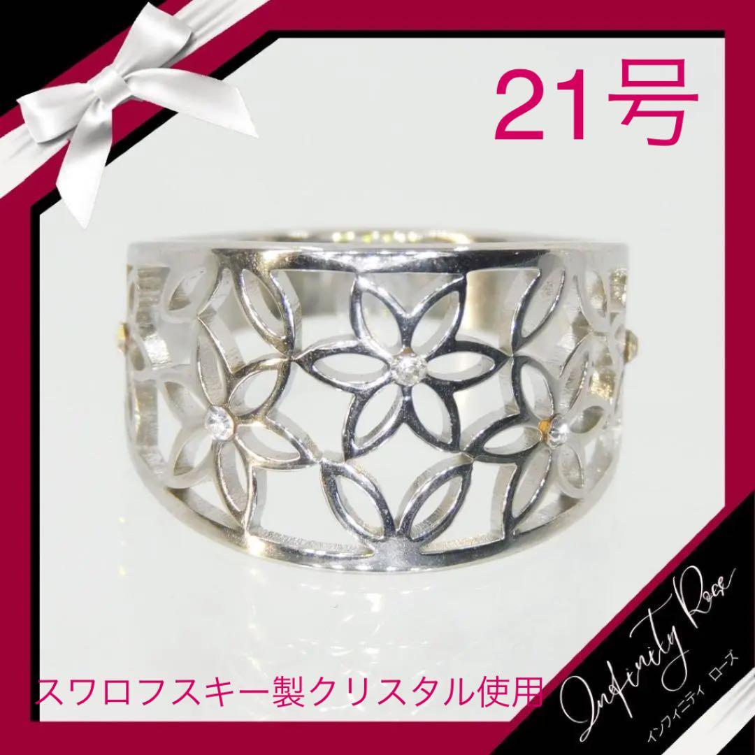 (1174)21号 シルバー繊細デザインフラワーステンレスリング 指輪