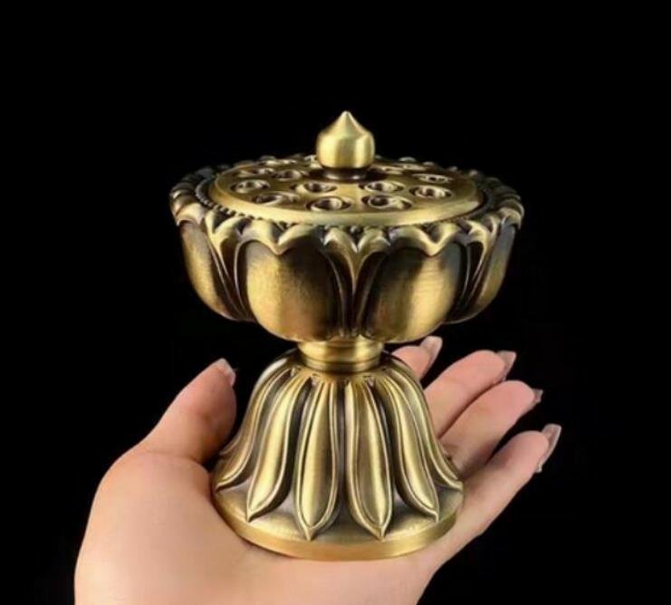 極上品◆純銅宝蓮灯薫香炉高脚蓮蓬香檀香炉家庭用室内香炉置物