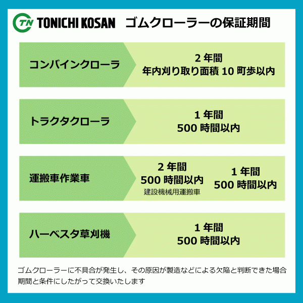 | 商品説明 | ★注意★必ずお読みください★ 落札前に必ず質問で在庫確認及び適合確認を行って下さい。 在庫確認無く、落札された場合はお取り寄せに時間がかかる場合があります。 在庫確認無しで落札され、キャンセルの場合は「落札者都合で削除扱い」 となりますのでご注意ください。 ★重要★必ずお読みください★ 1)個人宅への発送は出来ません。個人でご注文される場合は運送会社 支店止めとなり、お客様でのお引き取りが必要になります。 ※運送会社の指定は出来ません 2)法人様でご注文される場合は、必ず法人名でご注文下さい。 ※法人先へは発送が可能です 3)●●農園、●●牧場、●●ファーム等でご注文される場合はフォークリフト の有無をご連絡下さい。無い場合は、運送会社支店止めになる場合が あります。 4)発送後、運送便及び問合せ番号をご連絡いたします。 5)ご入金確認後、翌日のメーカーからの出荷になります。 5)土日祝日の発送は行っておりません。 6)北海道・沖縄・離島へは別途送料がかかります。落札前に必ずご確認ください。 落札頂いた場合上記事項をご理解頂いたと判断いたします。 ・・・・・・・・・・・・・・・・・・・・・・・・・・・・・・・・・・・・・・・ 東日興産株式会社製のゴムクローラー新品です。 東日興産のゴムクローラーは、スチールコードに継ぎ目がない高耐久性能を持った 新構造(エンドレス製法)ですので問題が発生する可能性が極めて少なくなります。 2本同時に交換することをお勧めいたします。 保証期間 : 納入から12ヶ月以内で使用時間500時間内に限ります。 メーカー : 東日興産株式会社 用途 : 除雪機・スノーロータリー 品番 : SN207230 サイズ : 200-72-30(200x72x30)芯金タイプ ※幅 - ピッチ - リンク数 状態 : 新品 本数 :2本セット 【適合確認】 三菱農機 除雪機 MSR1013 |