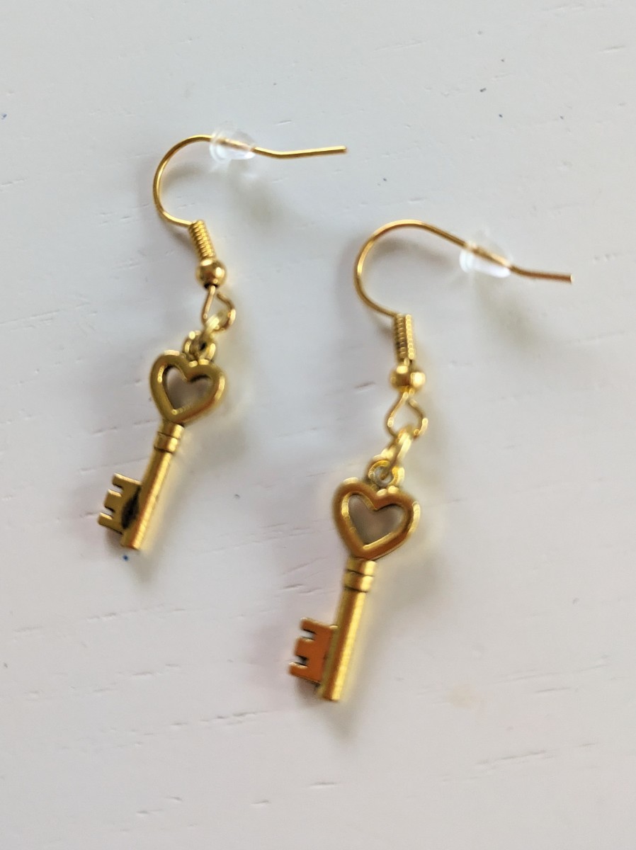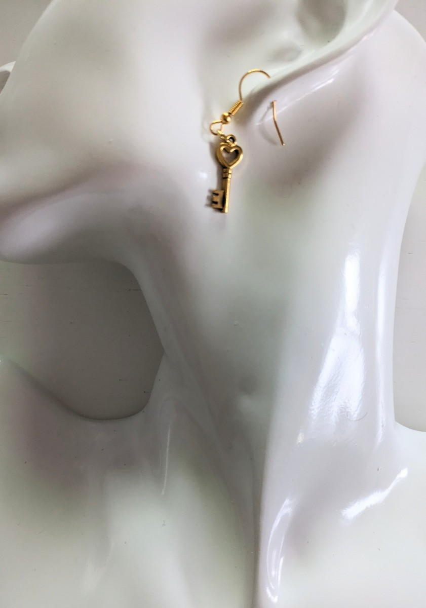 こちらは、新品未使用 ハート ゴールドカラー 鍵型 キーモチーフ フックピアス になります♪