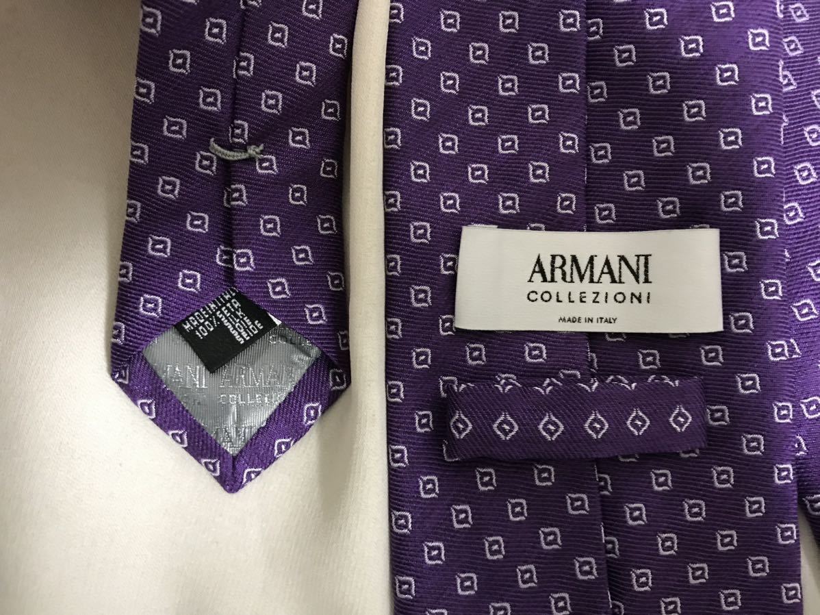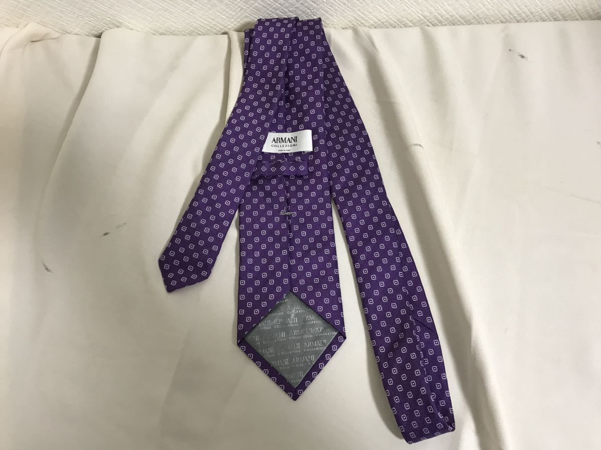 商品名:新品同様本物アルマーニARMANI COLLEZIONIシルク柄ネクタイ旅行メンズスーツビジネスミリタリーワーク紫イタリア製パーティードレス結婚式