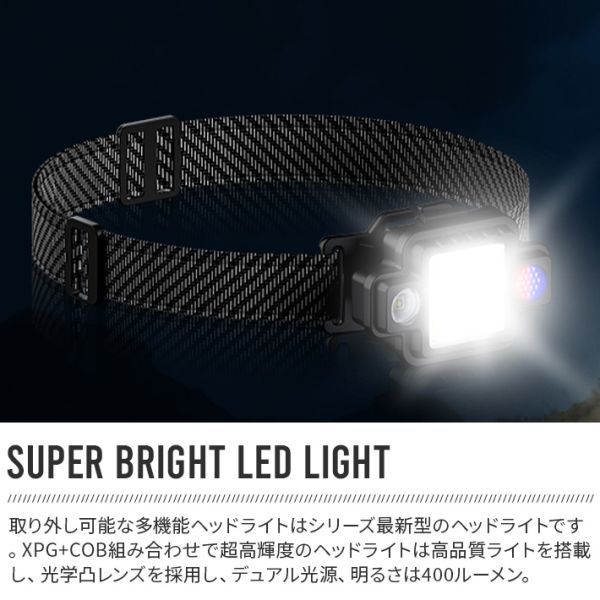 取り外し可能な多機能ヘッドライトはシリーズ最新型のヘッドライトです。XPG+COBの組み合わせで高品質なライトを搭載し、光学凸レンズを採用しています。デュアル光源の明るさは400ルーメンです。