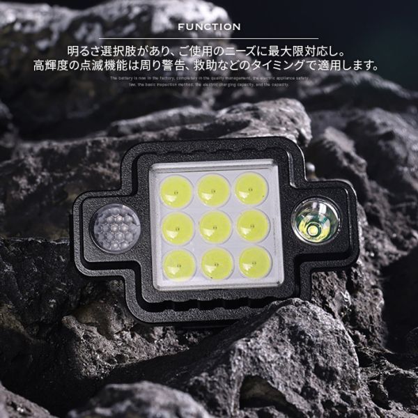 どんなモードを使っても、長押しすればCOB高輝度モードに切り替わります。マルチの明るさ選択肢があり、ニーズに最大限対応します。高輝度の点滅機能は周りへの警告灯となり、救助などのタイミングで活躍します。