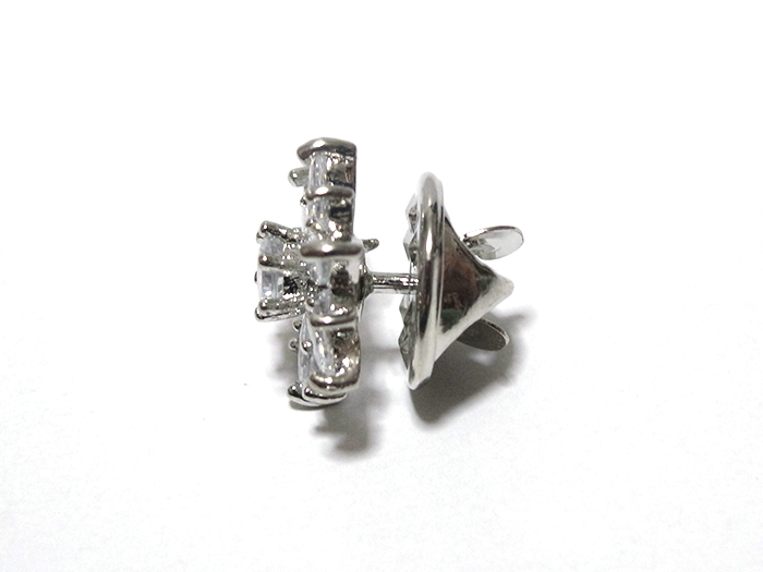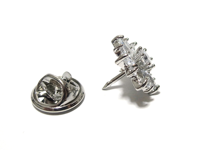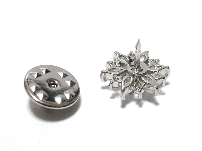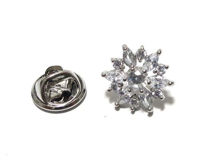 【ラペルピン★ピンズ】花 フラワー 装飾 クリスタル シルバー pin-0353