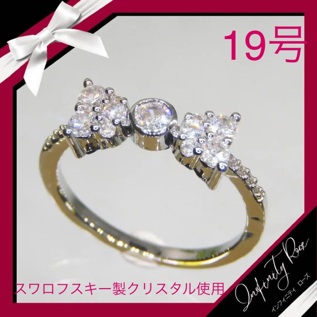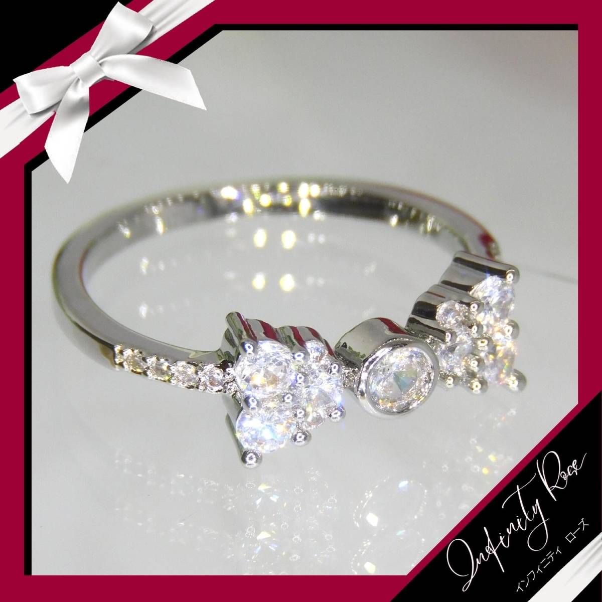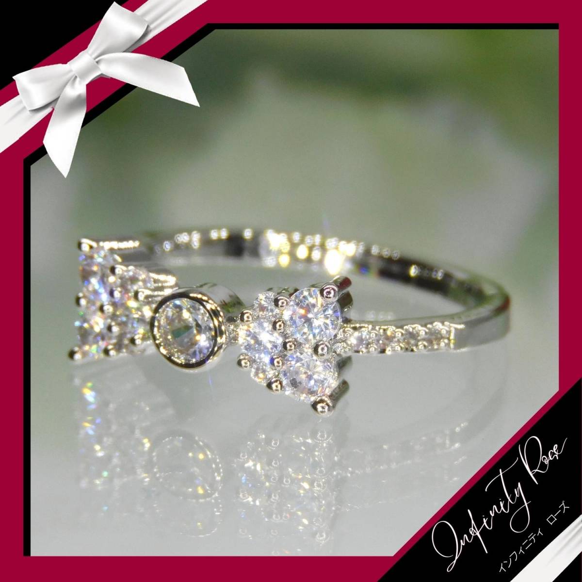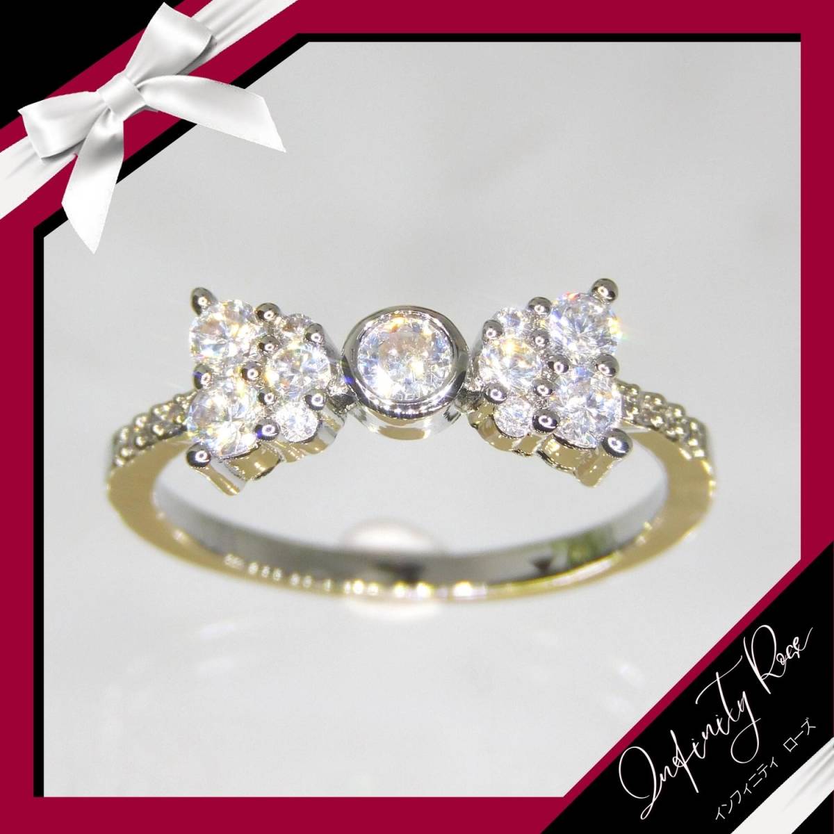 (1212)19号 小さな小粒のリボンリング可憐な細リング 指輪 スワロフスキー製クリスタル使用