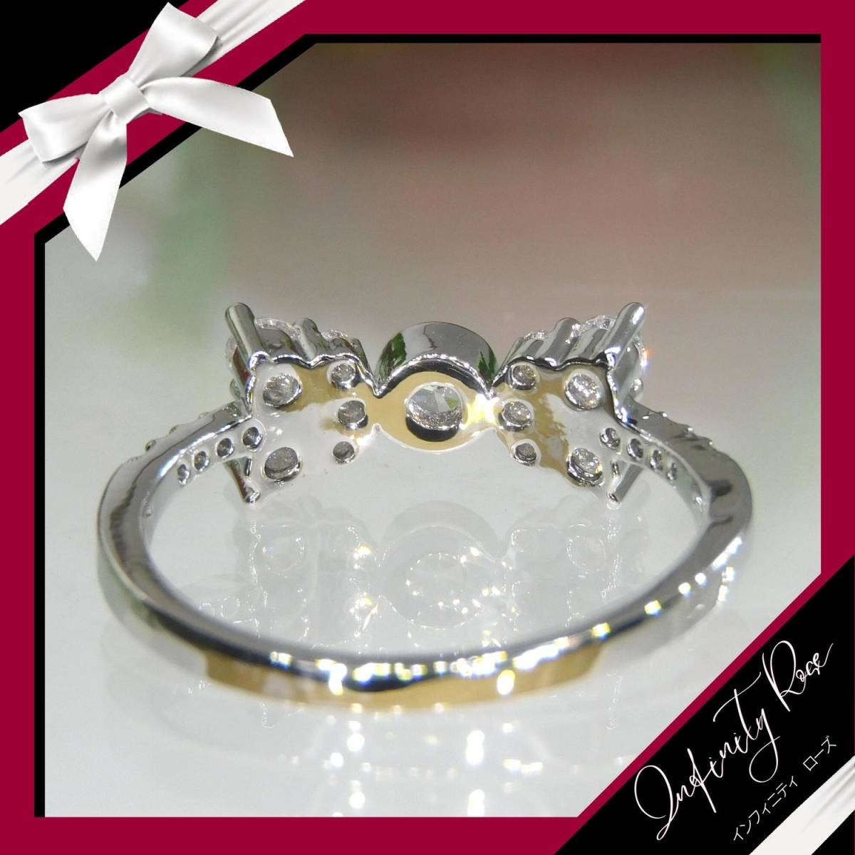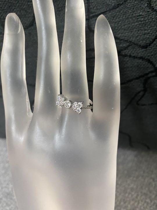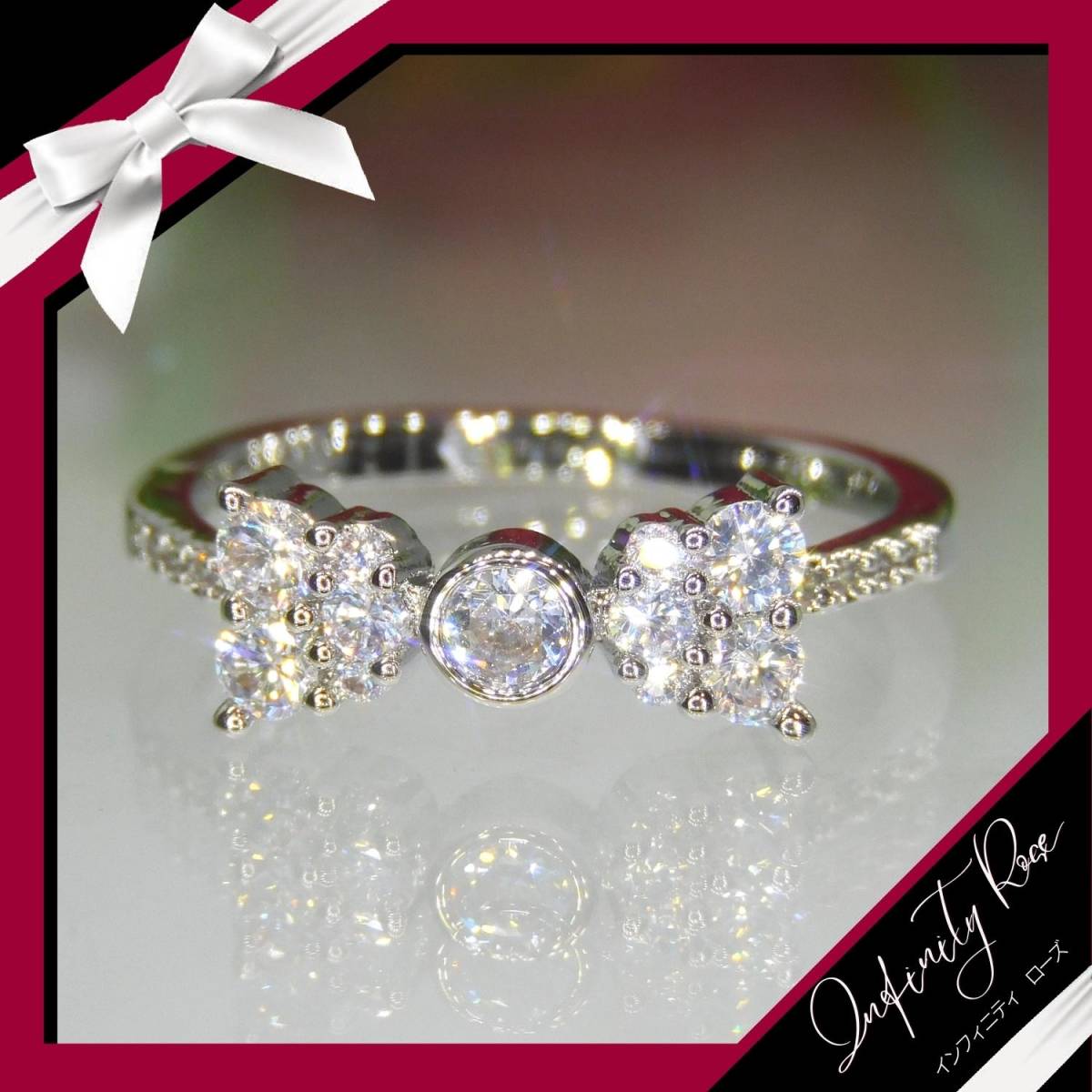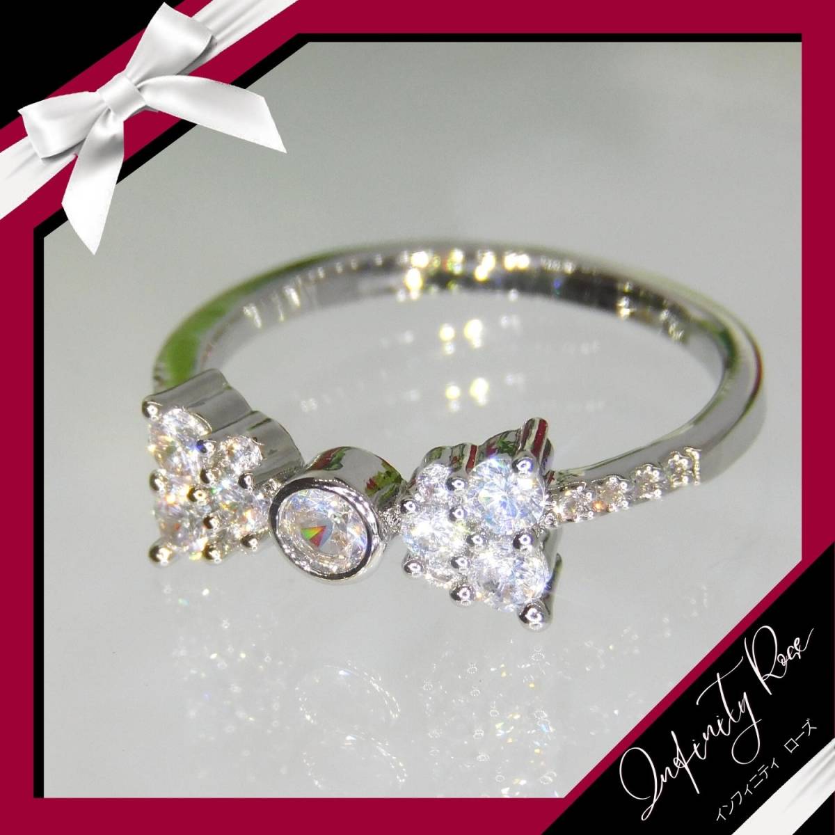 (1212)19号 小さな小粒のリボンリング可憐な細リング 指輪 スワロフスキー製クリスタル使用