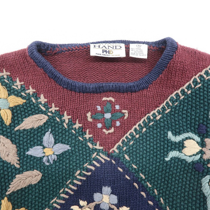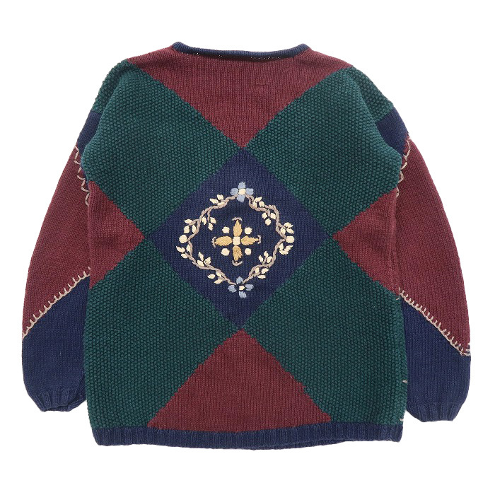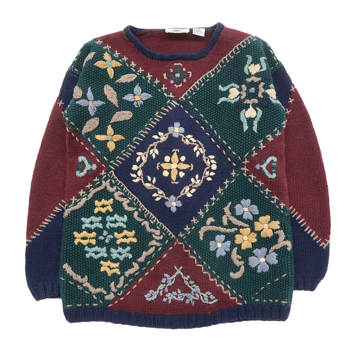 古着 レディース デザインニット セーター 総柄 マルチカラー サイズ表記:S gd74588