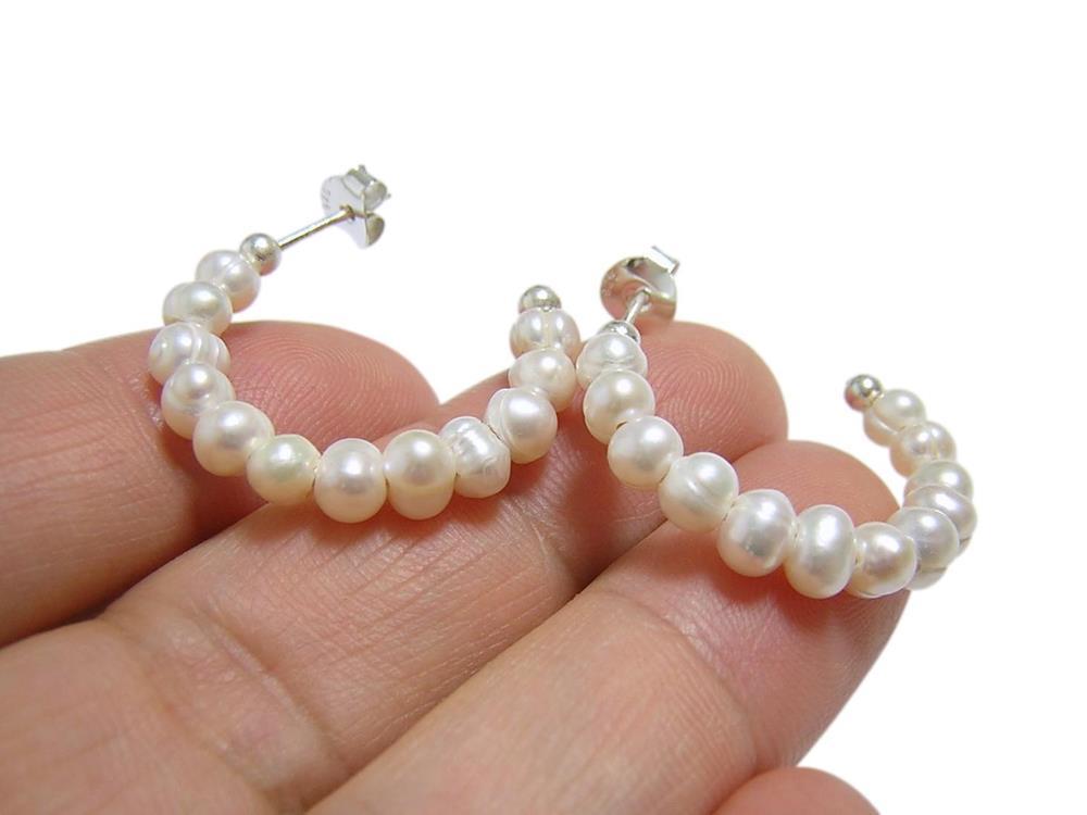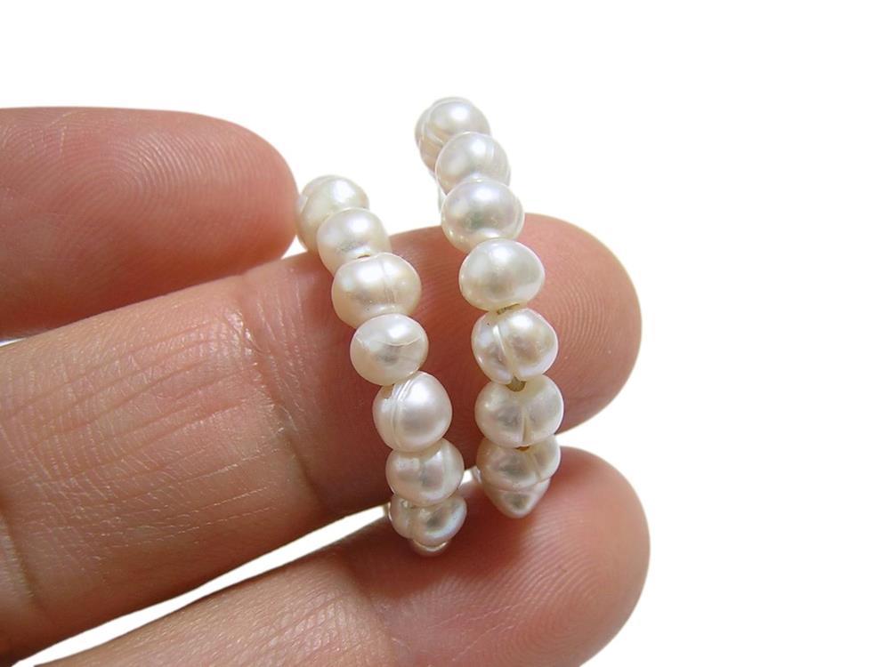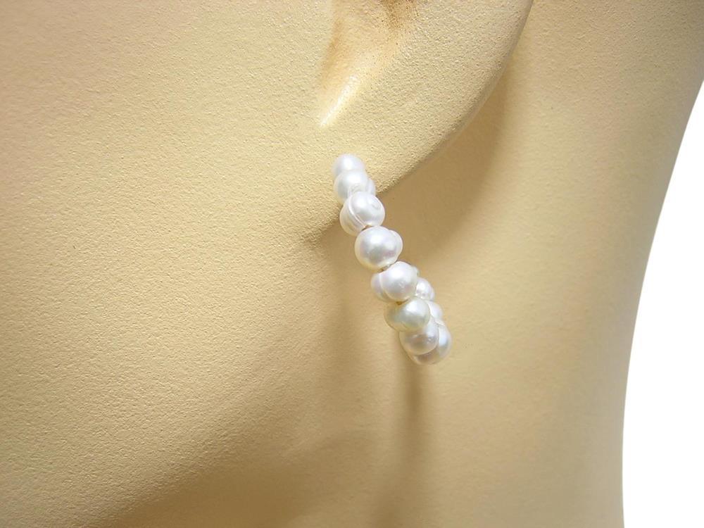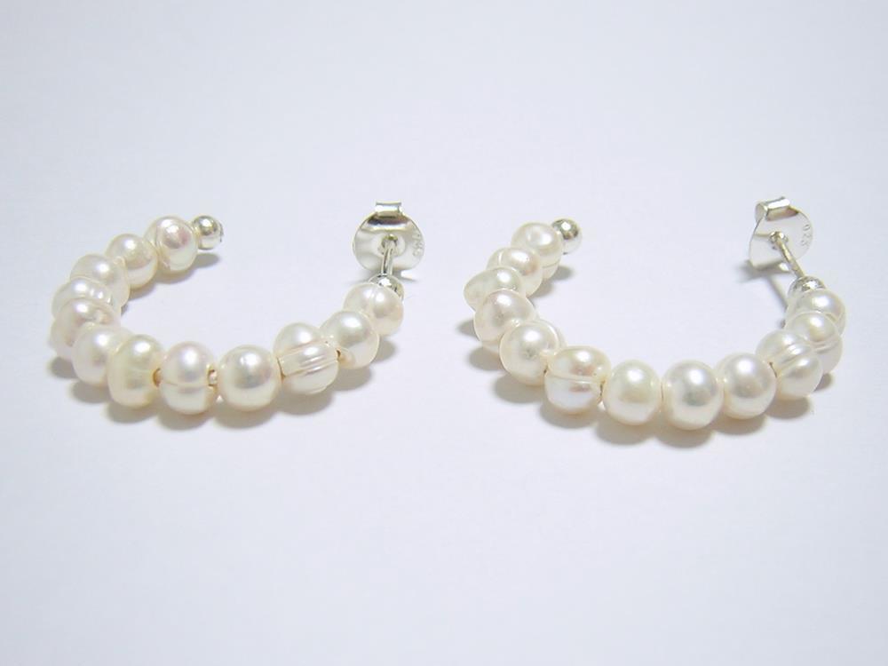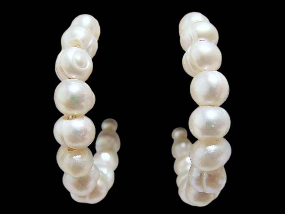 淡水バロックパールを12粒ずつ使用したフープピアスです。 パール一粒の大きさは約4~5mmで、色味の違いや天然由来のキズやサークル傷などが多数あります。 【石名】淡水真珠 【産地】中国産 【重さ】4.5g 【サイズ】縦27mm×横26mm 【素材】シルバー925 【刻印】925 【状態】新品 |