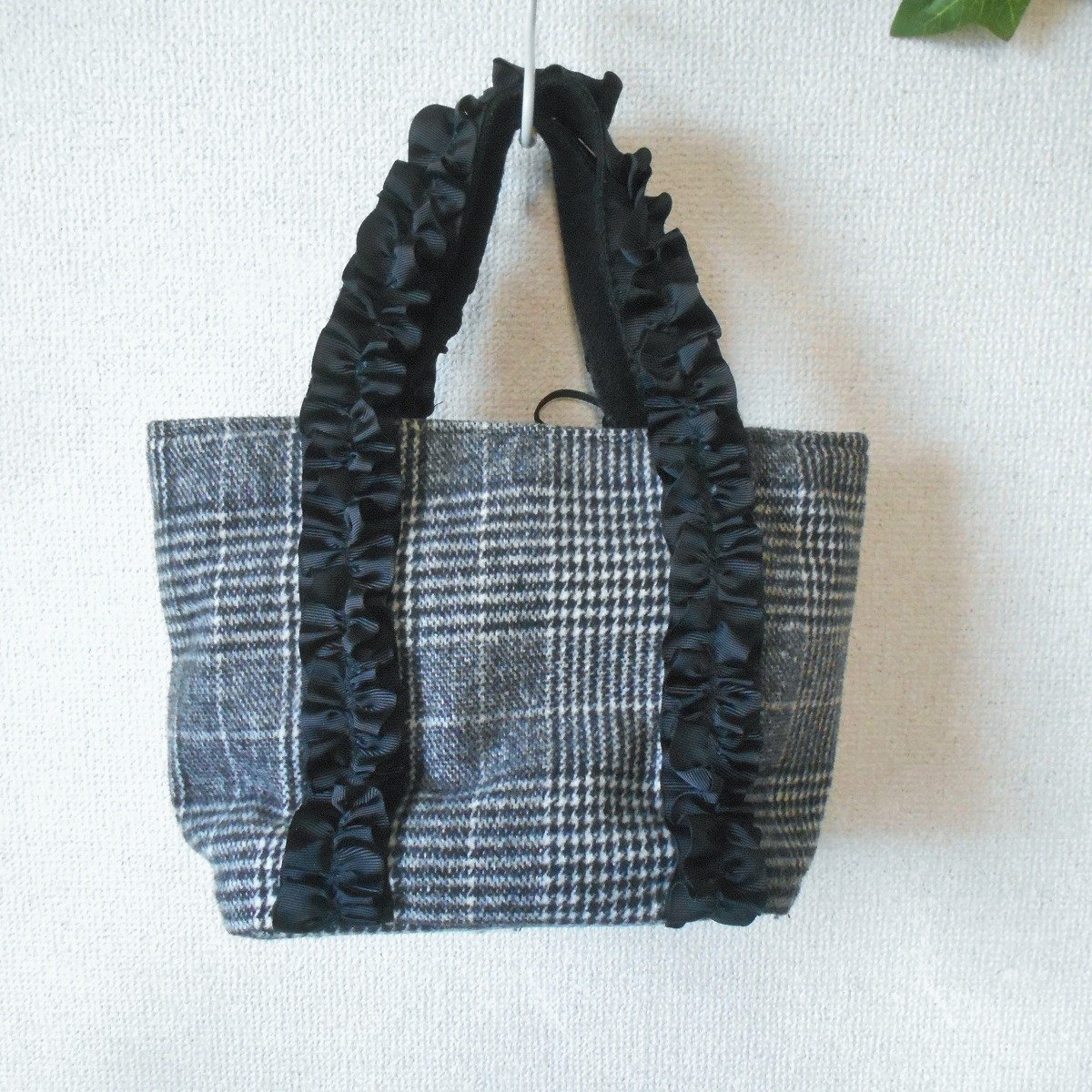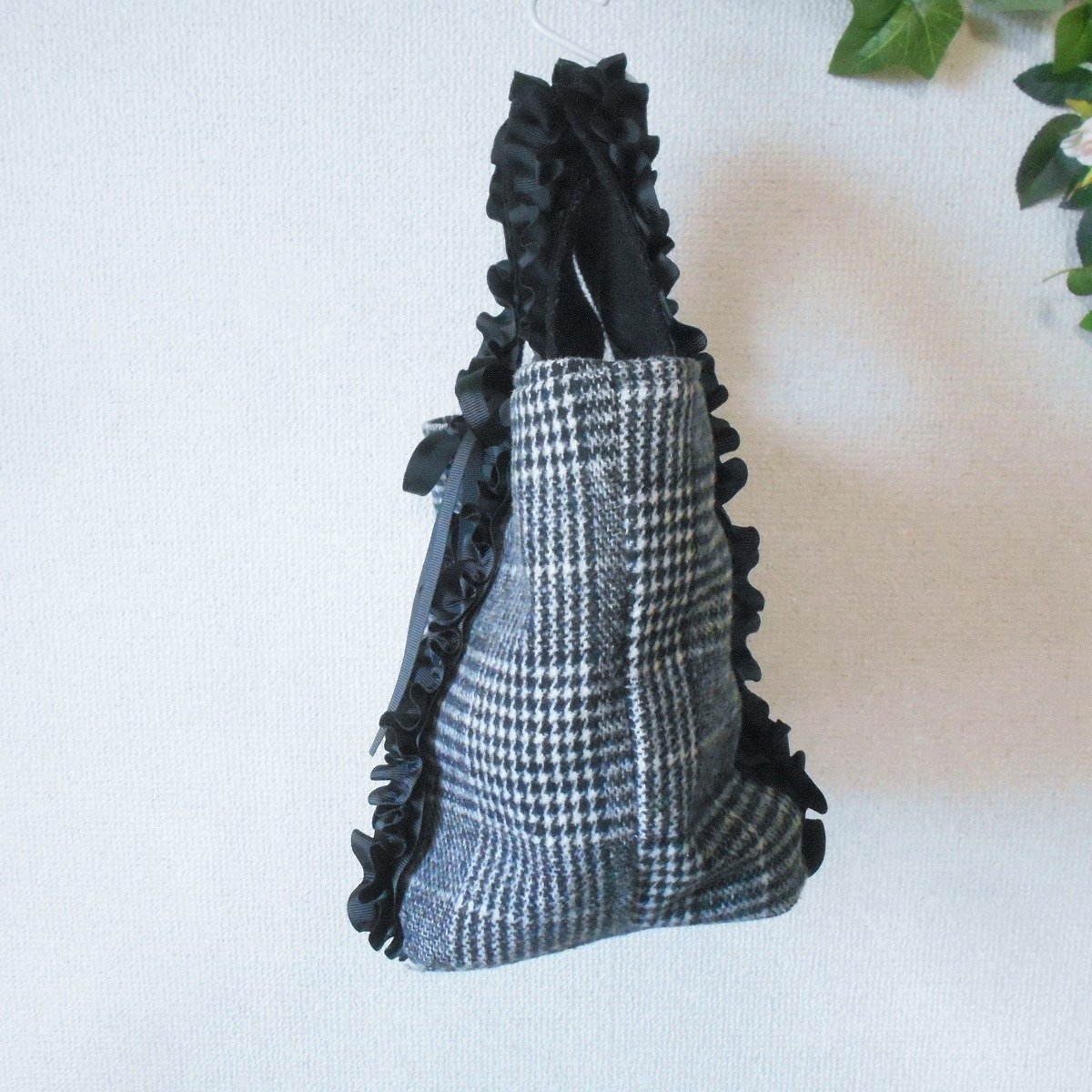 【ポイント】クチュールブローチのバッグになります。白黒のモノトーンカラーで持ち手部分にはフリルが使用してあります。