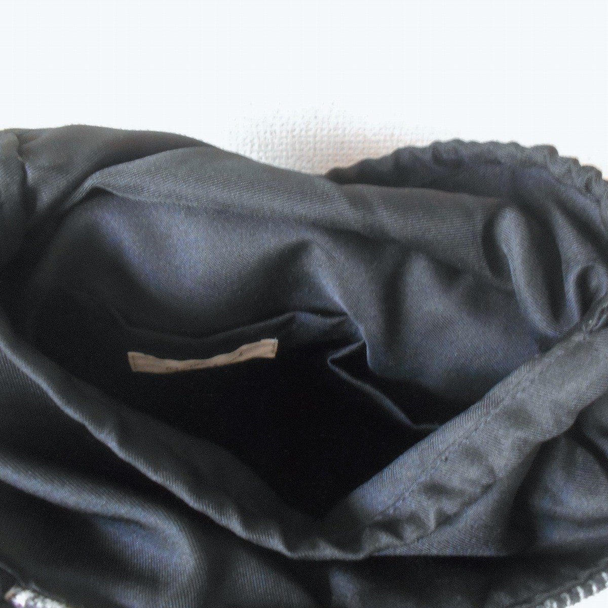 ポケットは中に2つ(ファスナーなし)あり、上部は巾着のように絞るカバー付きです。