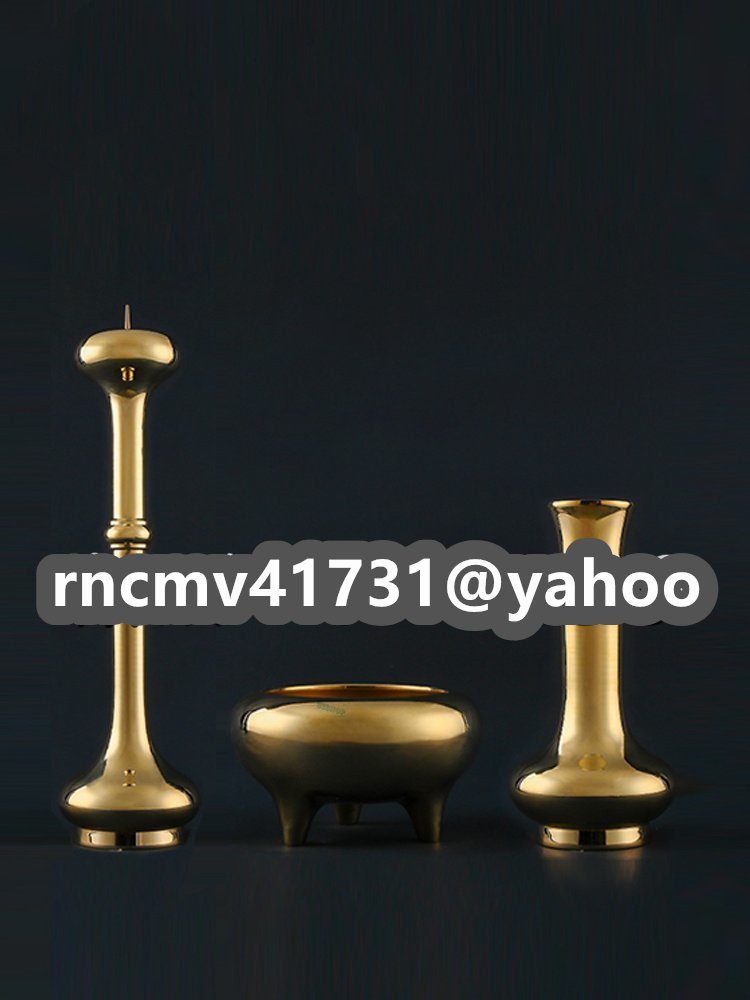 「密教法具 寺院用仏具」大型 寛通型 五具足 花立1対 火立1対 香炉1個 仏教工芸品 磨き仕上げ 真鍮製 9寸