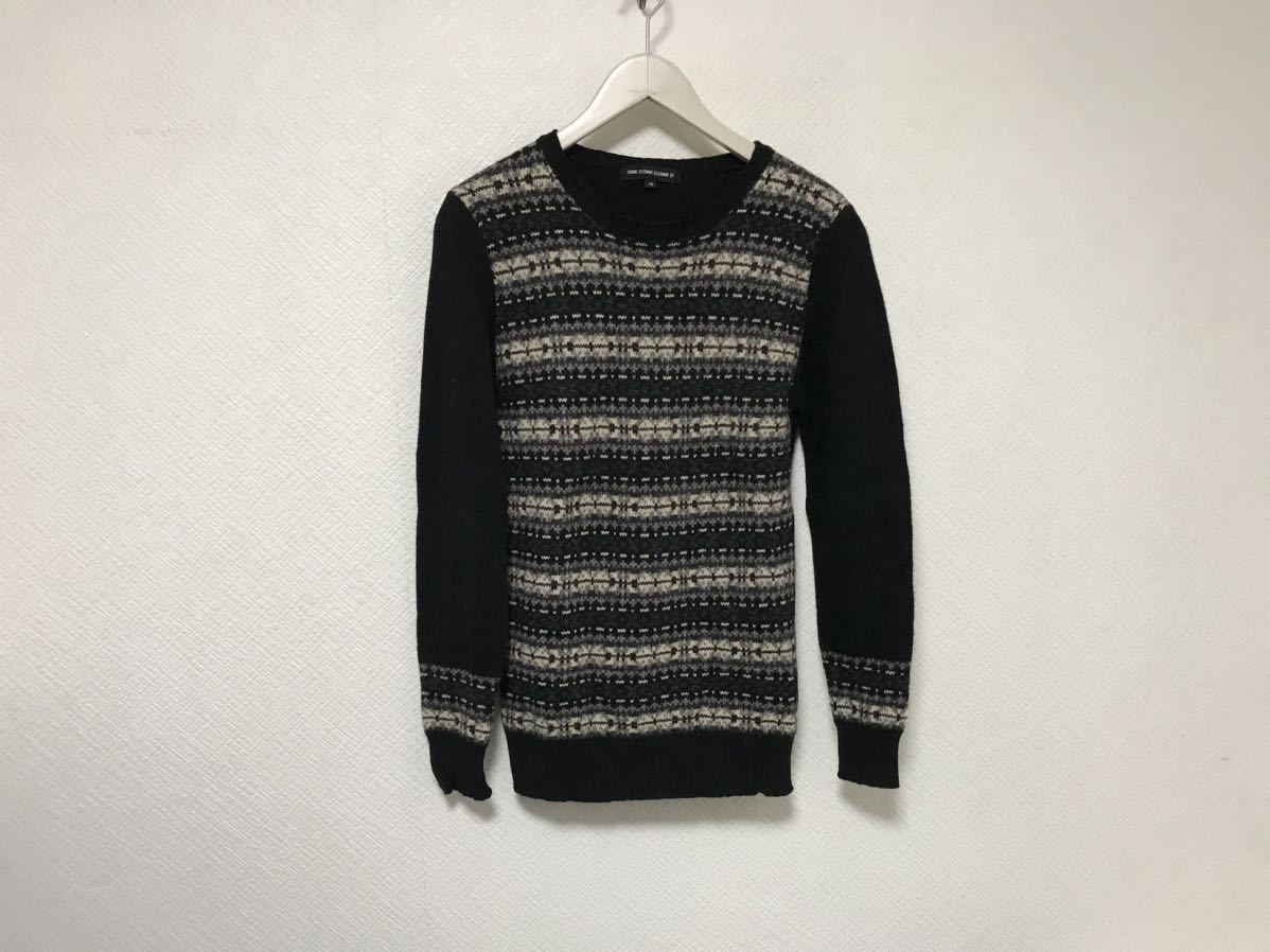 商品名:本物コムサコムサコムサCOMMECA|COMMECA|COMMECAウールニット長袖セーターメンズサーフアメカジビジネススーツゴルフ黒ブラック柄M46