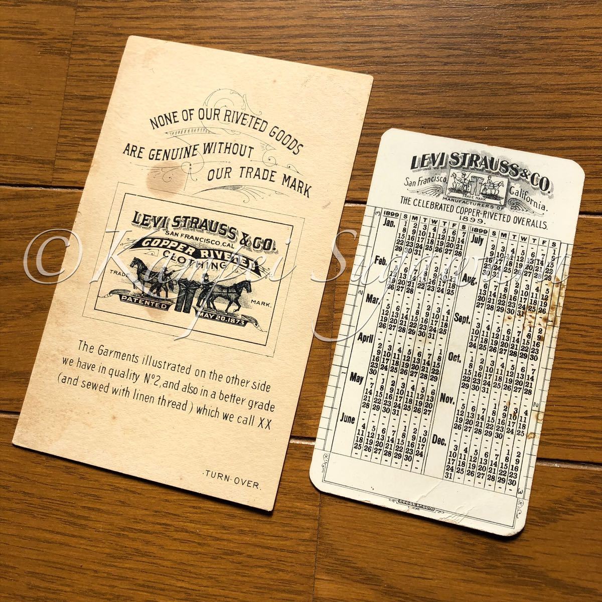 期間限定で出品します。大変貴重な1890年代のリーバイスの販促品の2枚セットです。当時の本物です。