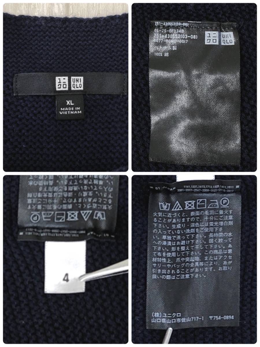Y0164 UNIQLO ユニクロ レディース トップス カットソー 長袖 XLサイズ ネイビー 紺 綿100% コットン 春秋 シンプルデイリーカジュアル