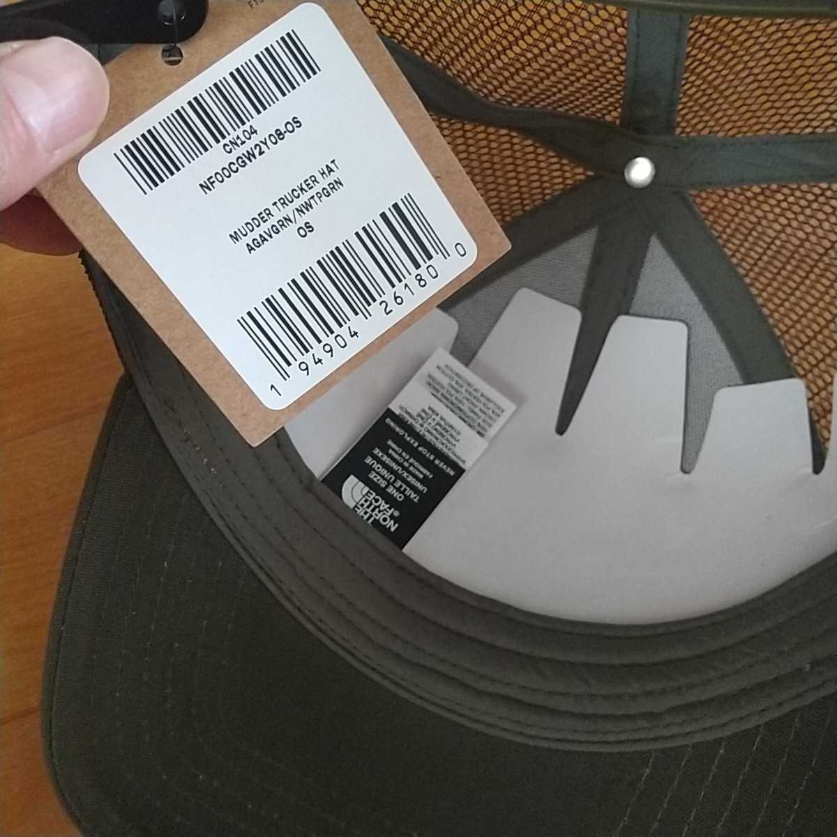 The NORTH FACE社製。ワンサイズ(日本で言うフリーにあたります)。調整ベルトタイプ(ざっとみたところ55-61cmくらいの範囲で調整可能です)。 型番NF00CGWY08-OS、正規品を示すホログラムのタグ付。素材:コットン&ポリエステル。