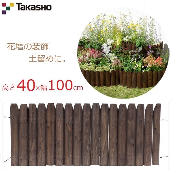 花壇フェンス ガーデンフェンス 40×100cm 先割花壇フリー 花壇 柵 土留め 木製 仕切り 庭 タカショー HGK-SK40