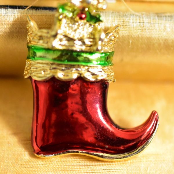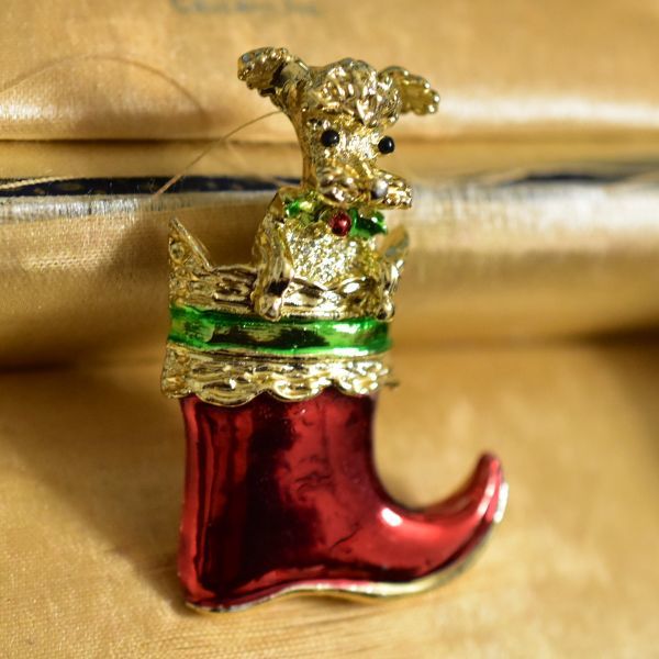 ヴィンテージ GERRY'S刻印 エナメル/七宝 靴下と子犬のブローチ げーリーズ 本物保証 雑誌掲載品 クリスマス