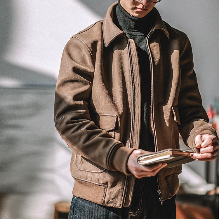 上品A1 フライトジャケット メンズ ミリタリージャケット 空軍 カジュアル 牛革  本革 革ジャン S~5XL  ダークブラウン