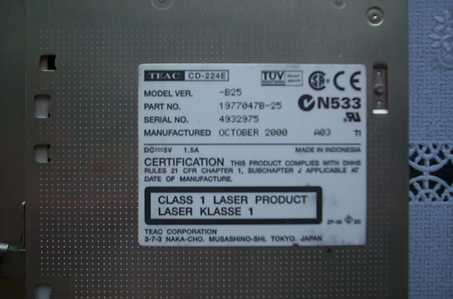 ★CDドライブ~TEAC製 CD-224E黒 スリム型~ジャンク