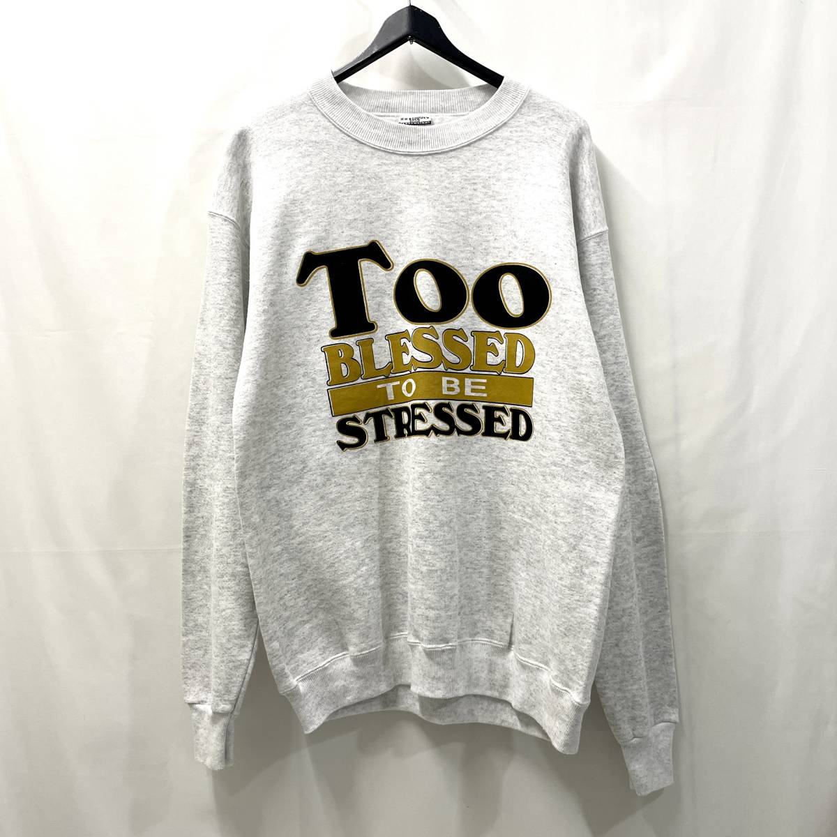 90年代のビンテージです。 ハッピーなメッセージプリント。 黒×ゴールドのプリントの配色もカッコいいですね。 タグはSTURDY SWEATS BY Lee。 洗濯済みになります。お探しの方におすすめです。 | |||