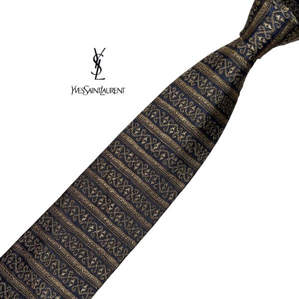 ★日本製高級シルク★ YVES SAINT LAURENT パターン柄 ネクタイ イヴ・サンローラン USED メンズ服飾小物 ネコポス可 中古 t524